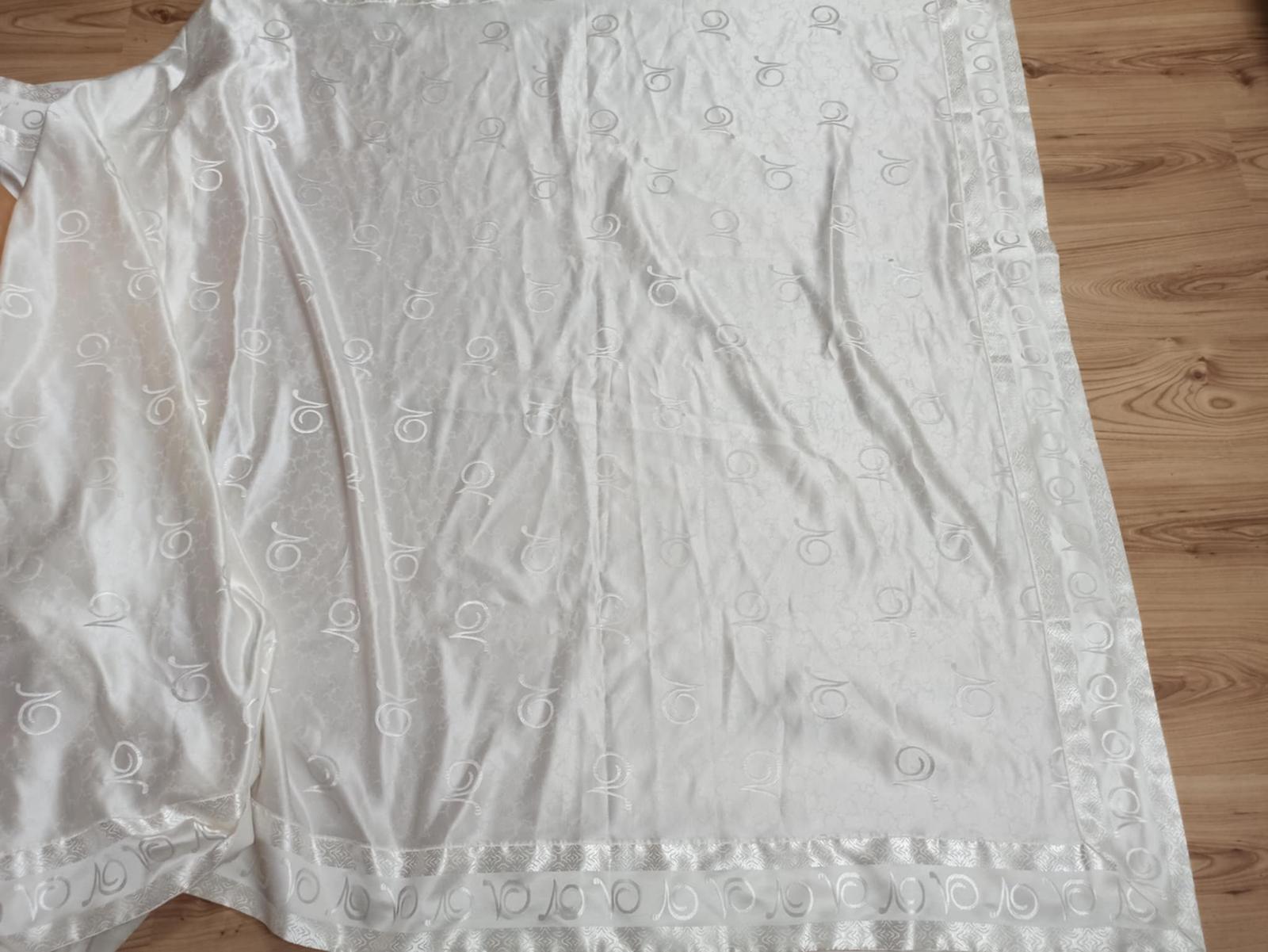 Obrus z polyesteru s imitaciou lanu, ma protiskvrnovu upravu a odpudzuje vodu, bol na stole zopar krat a ma velmi slabucko viditelne znamky pouzivania - volnym okom, ani na foto nevidno. Obrus: 1...