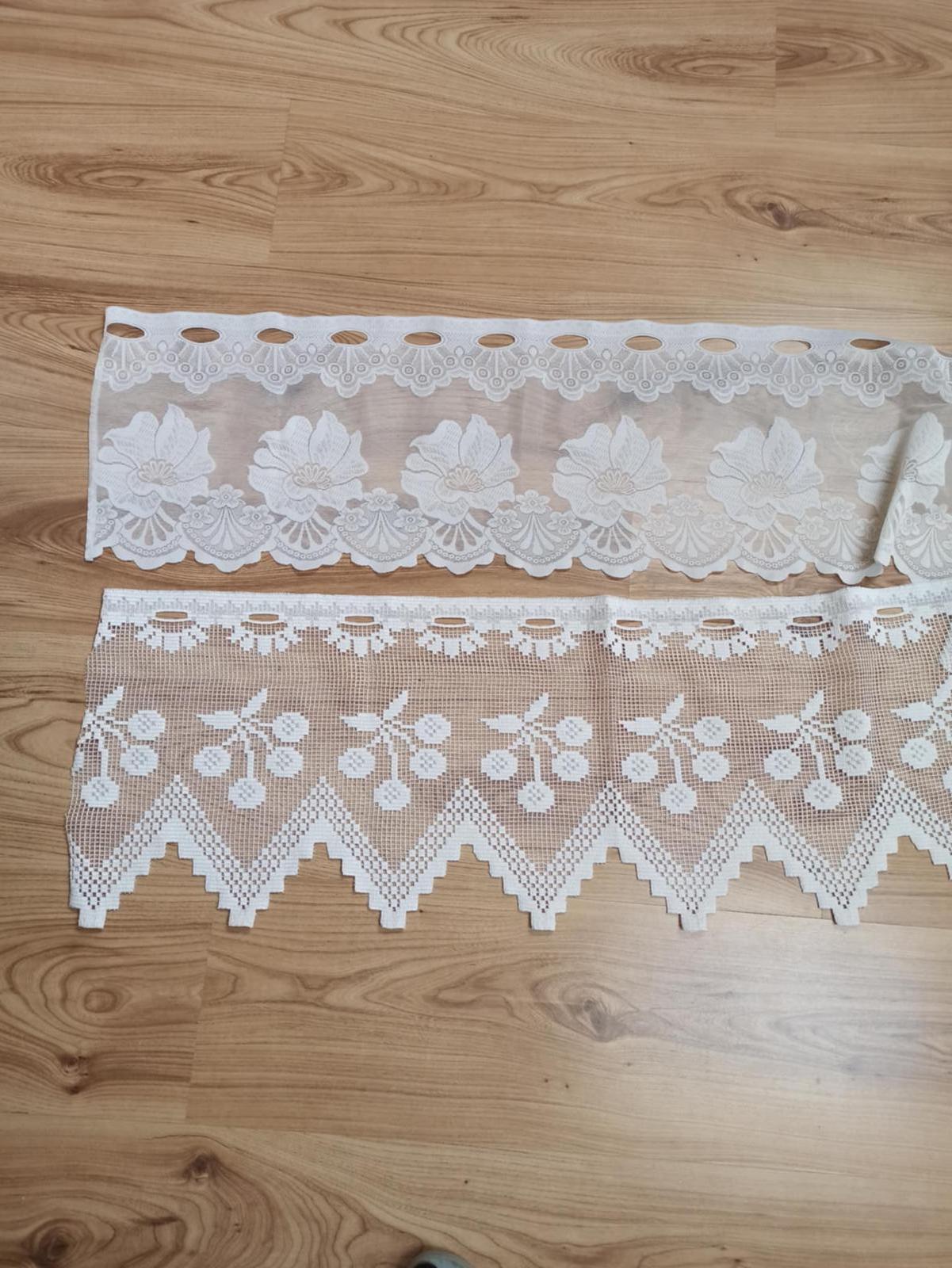 Predám set - 3 čisto nové záclonky bielej farby olemované lesklou stužkou zelenkavej farby. Rozmery záclon pred nariasením šírka 340 cm a výška 120 cm, a záclona určená na balkónové alebo terasové ...