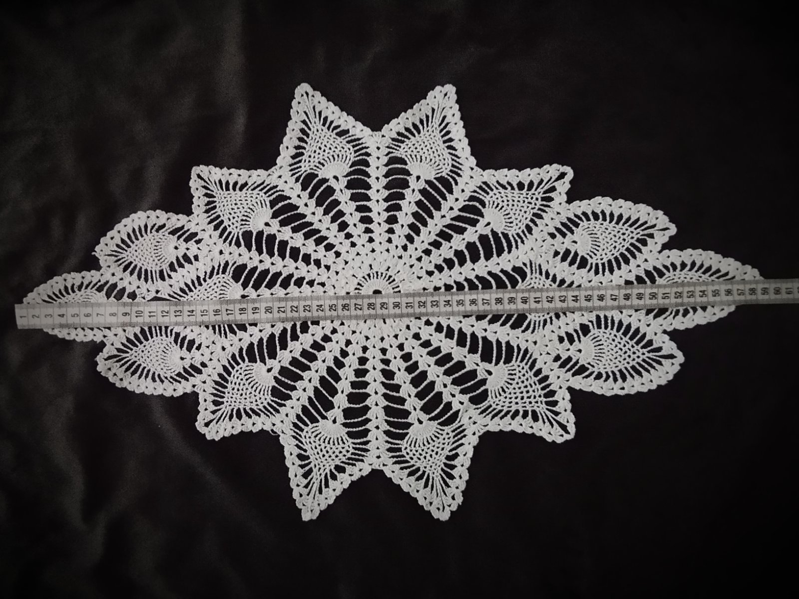 Je potrebné lepšie naškrobiť a lepšie povyťahovať nitky. Po dokončení je opratý a jemne naškrobený, aktuálny rozmer je na fotke, v prípade záujmu je možné vyskladať si sadu, viď ďalšie fotky v albume