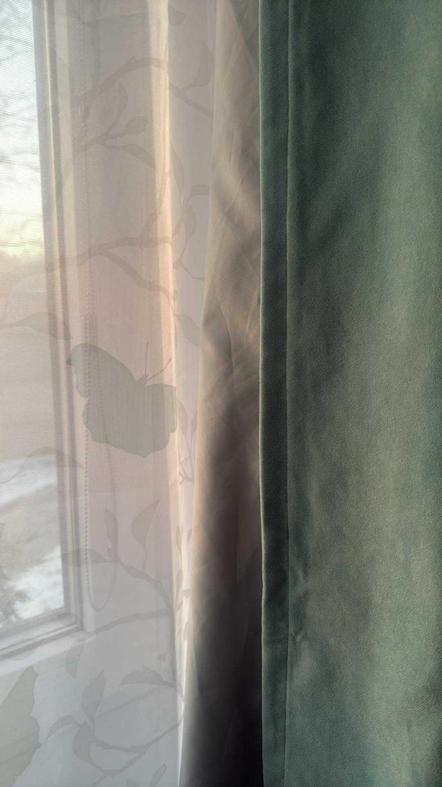 Mám dva pary závesov v mentolovej farbe , dĺžka jedného 148 cm a šírka 200cm (tzn 4ks - závesov )