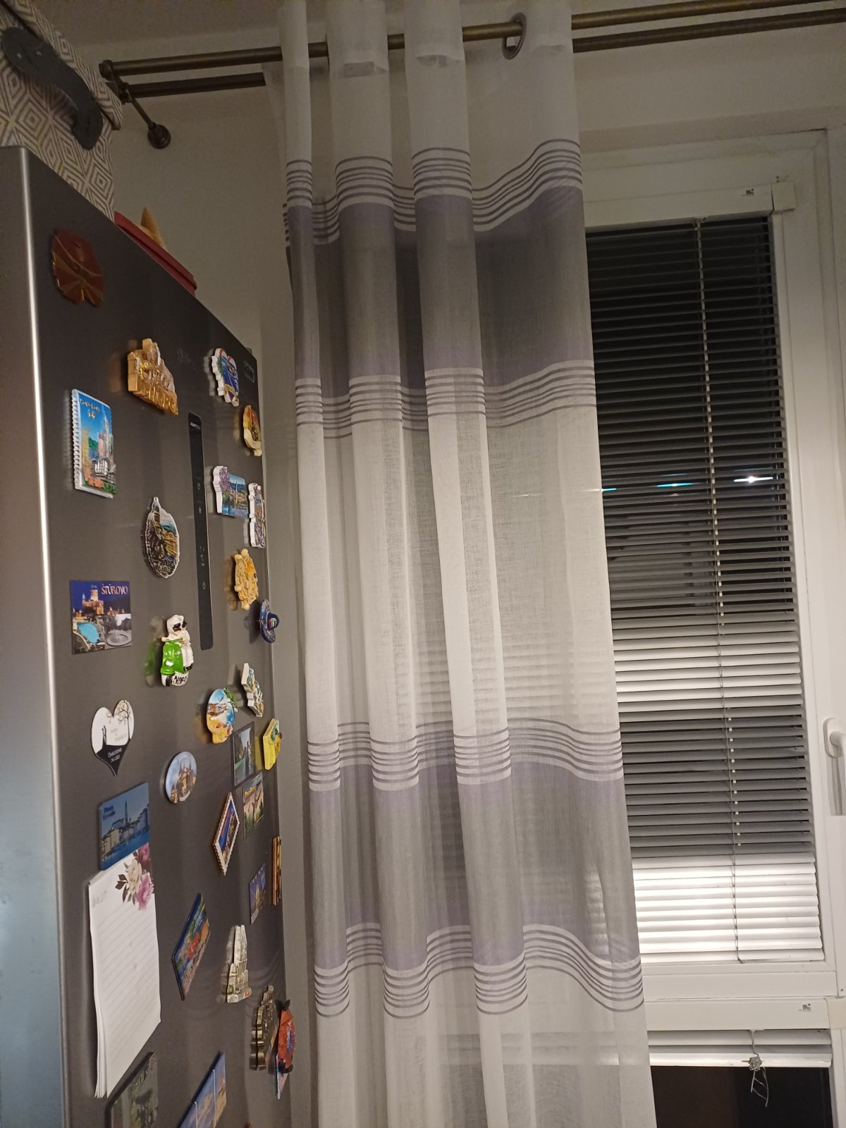 Predám pekné závesy/záclona top stav farba bledo fialová s bielou ,140x250 cena za 3 kusy 15eur uz aj s poštovným