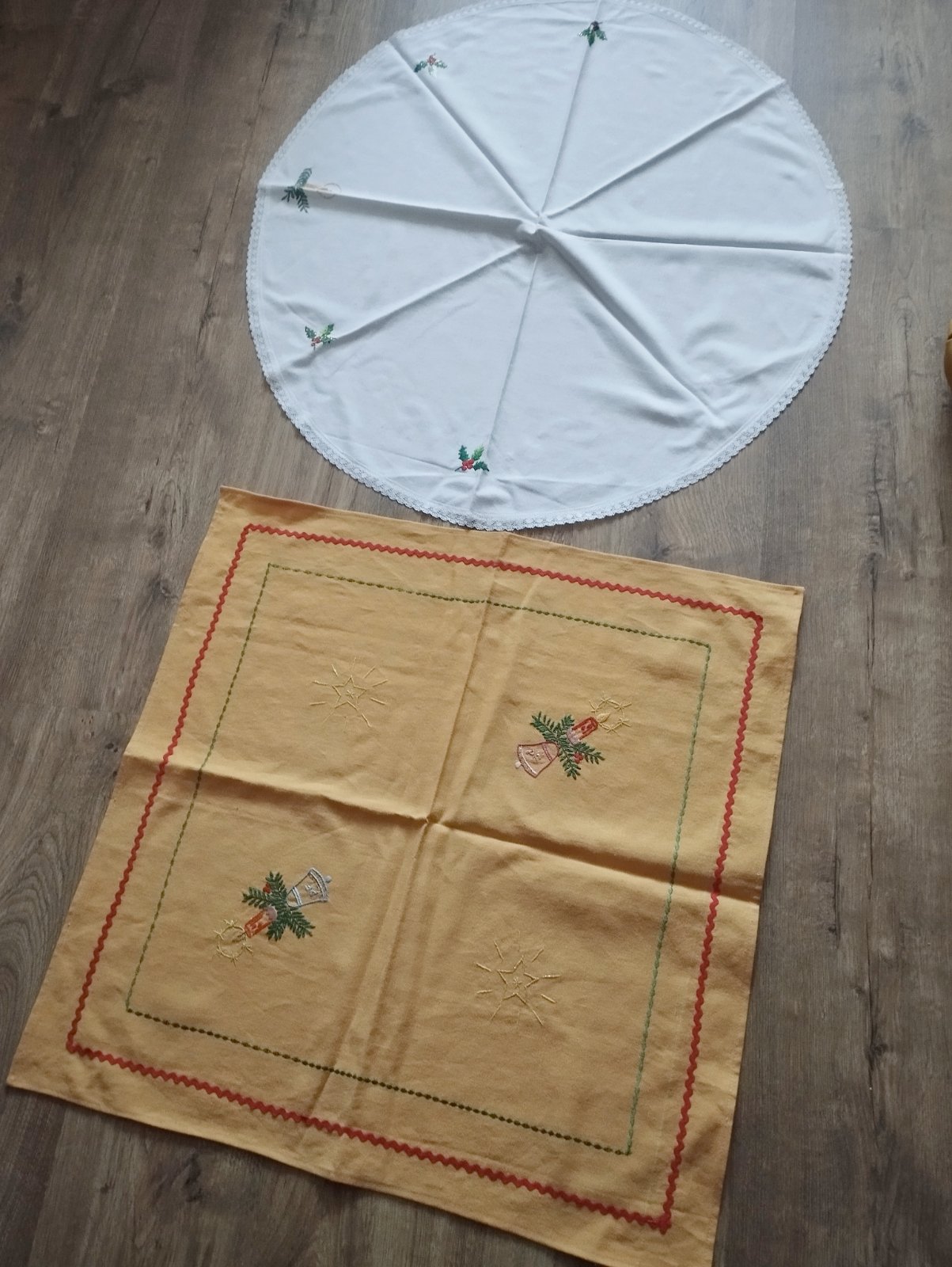 Ručne vyšívané vianočné obrusy. Cena za obidve 8€, ak zvlášt tak kus 5€