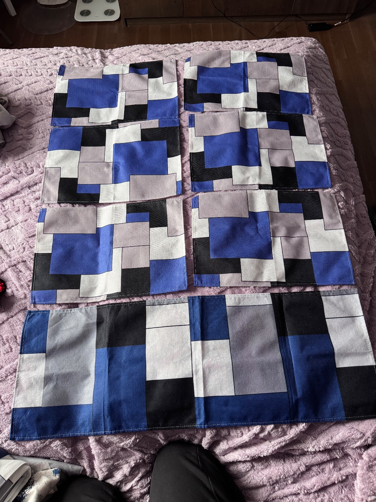 Predám používané 4 ks prestierania v peknej tmavomodrej, farbe. Nevyblednutá a sýta farba. Cena 3 eurá.