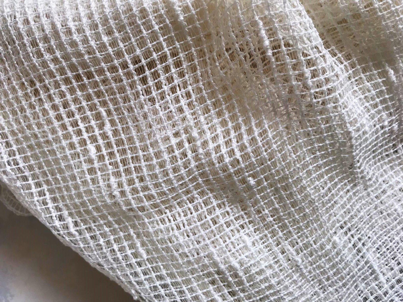 krásna jemne perleťová záclona s uzlíkmi, na spodku lanko - ktoré ju krásne vypne, hore riasená - riasenie sa dá rozpustiť,dlžka = 237 cm,spodný obvod ( kde je lanko ) = 344 cm, horný ( riasený ) obvod = 260 cm,je v top stave - takmer nepoužívaná