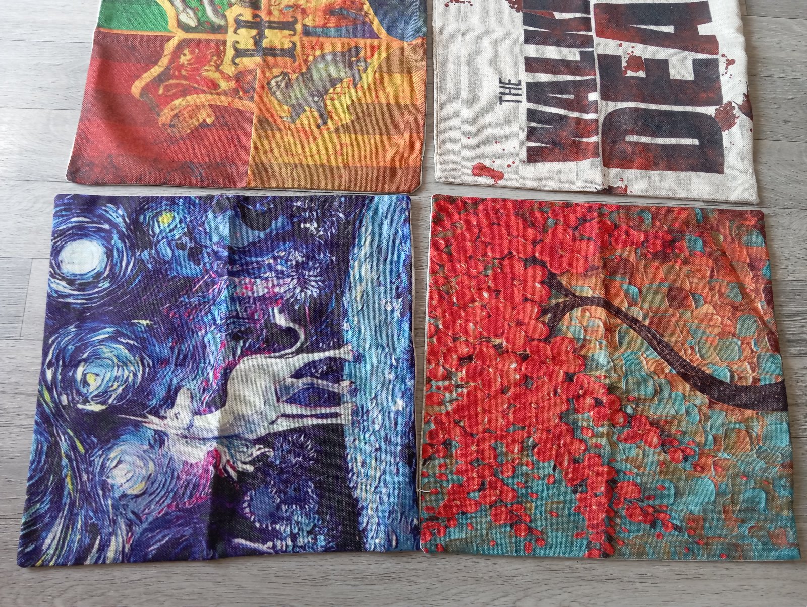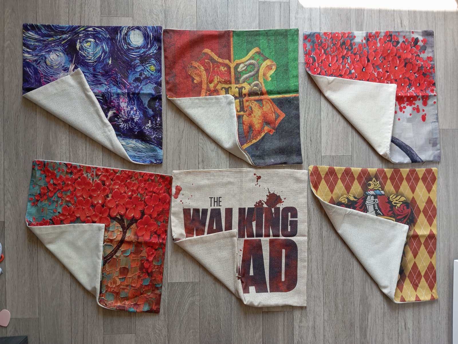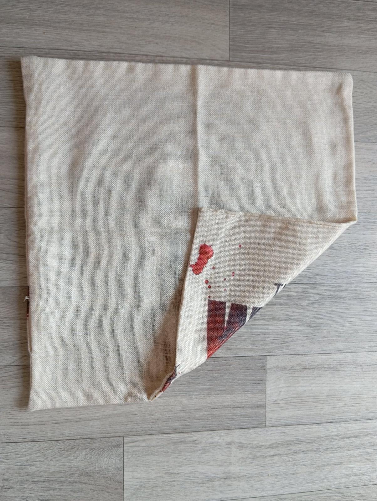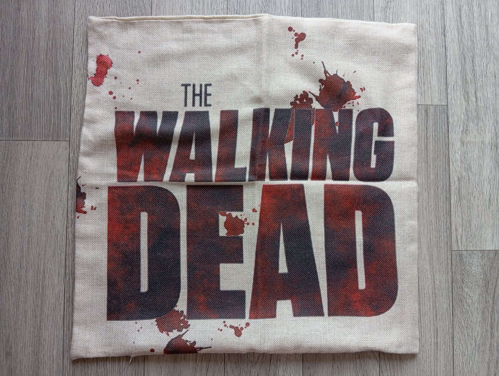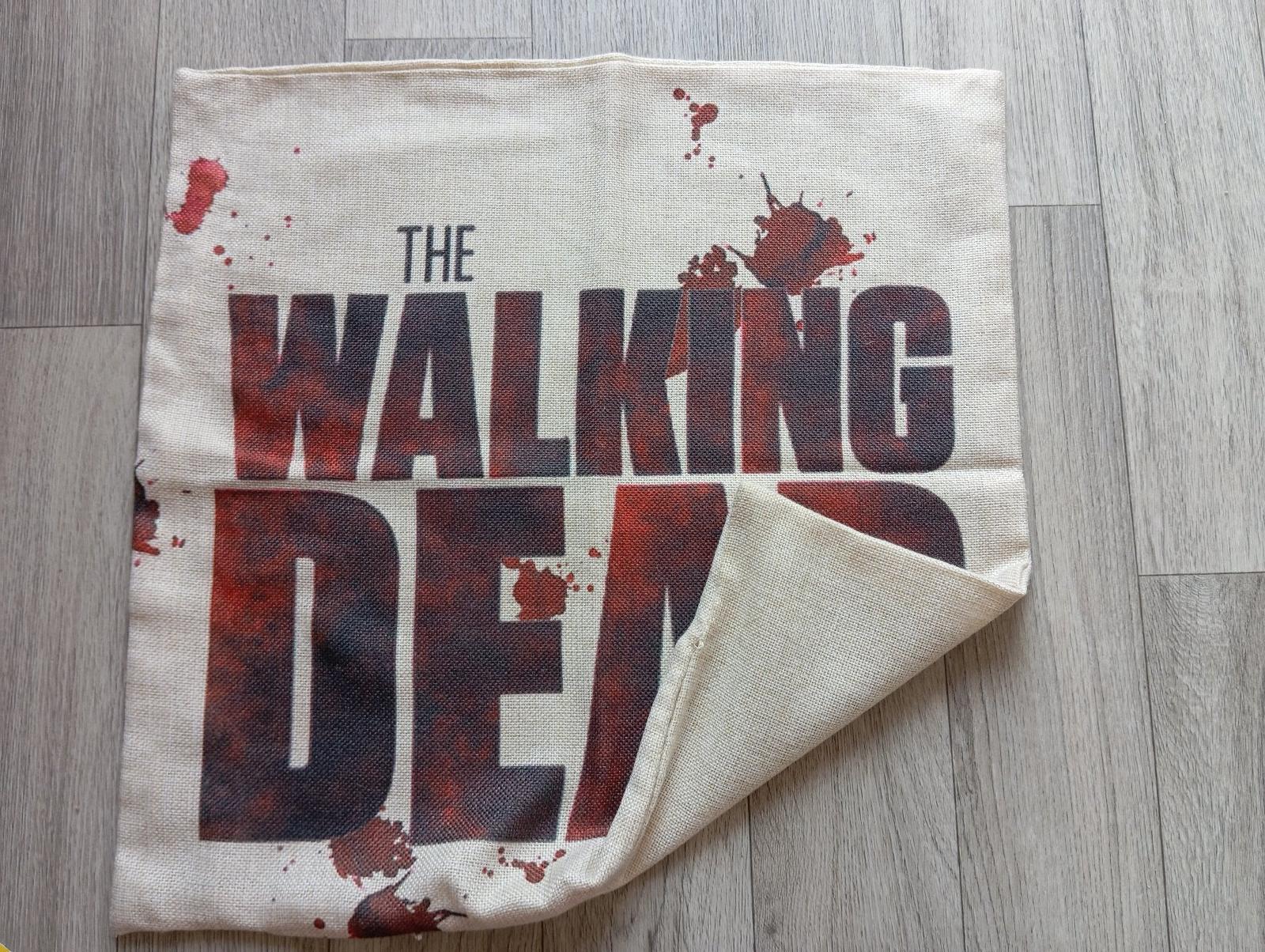 6. Béžová plátenná obliečka na vankúš The Walking Dead (post-apokalyptický serál Živí mŕtvi).
