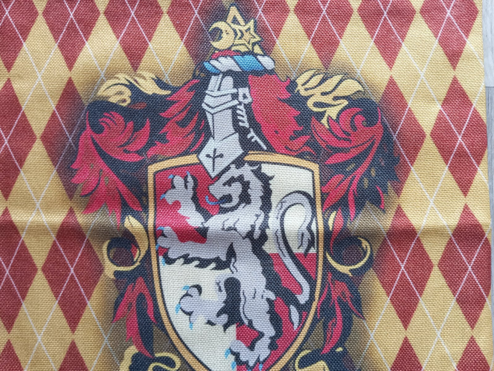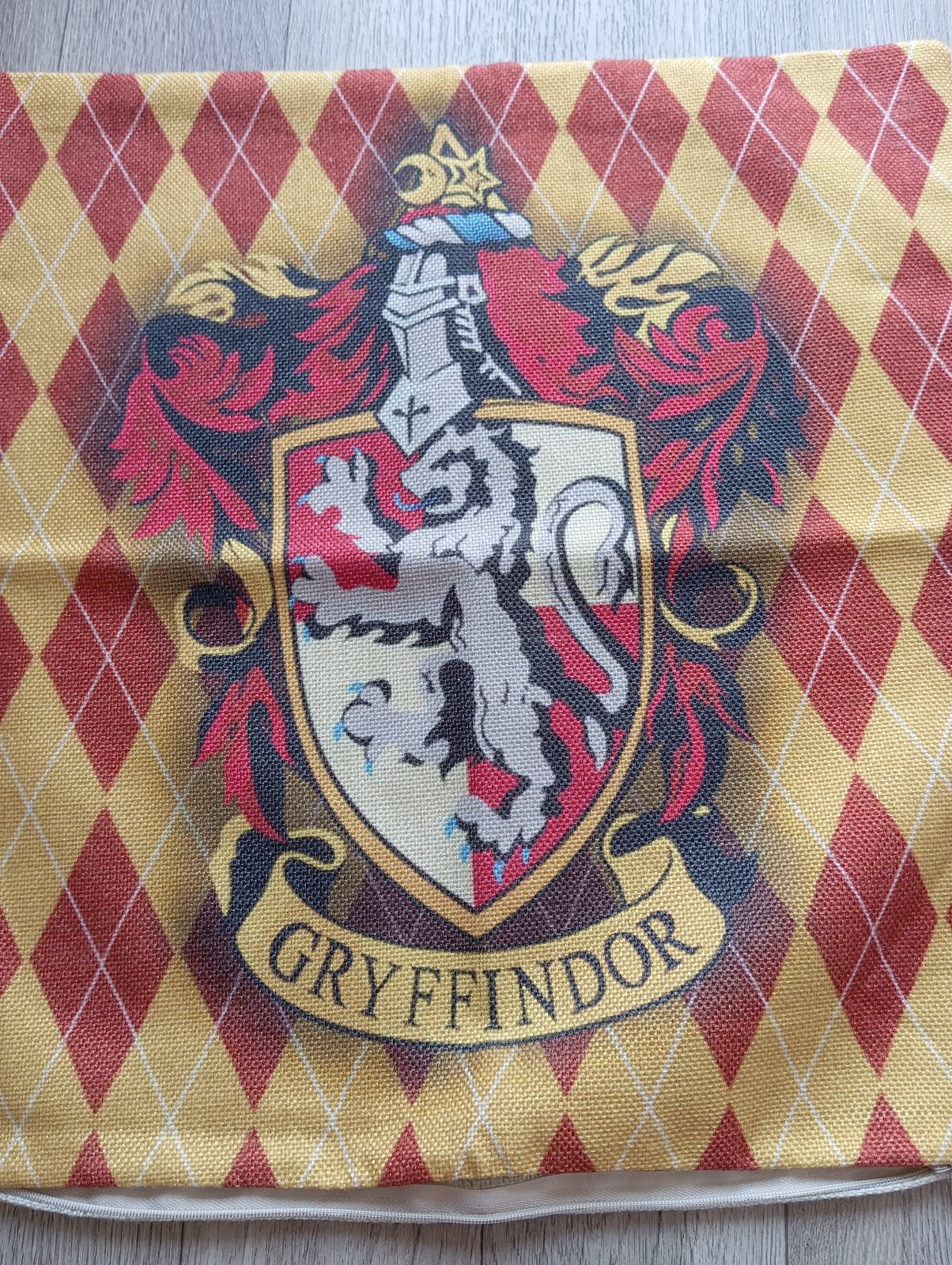 2. Béžová plátenná obliečka na vankúš s logom Gryffindor (Chrabromil - Harry Potter).