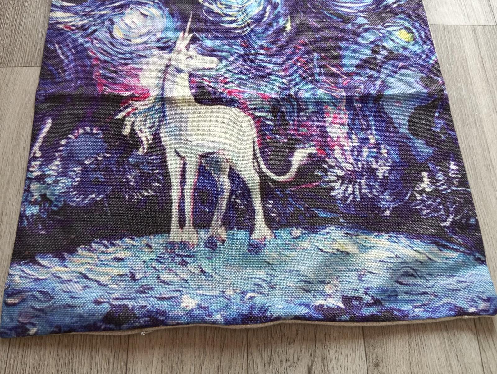 4. Béžová plátenná návlečka na podušku s jednorožcom (z rozprávky Posledný jednorožec, 1982).