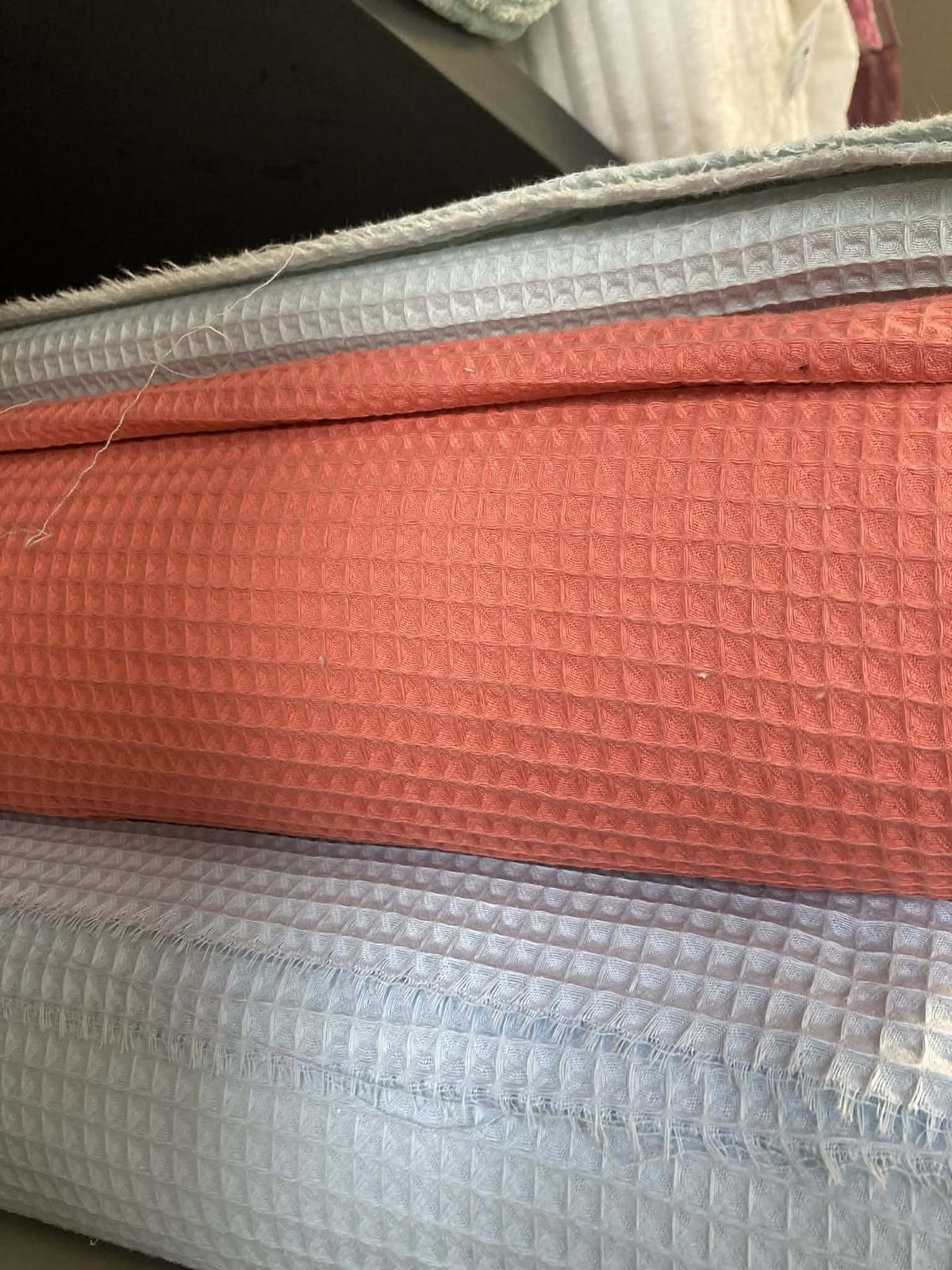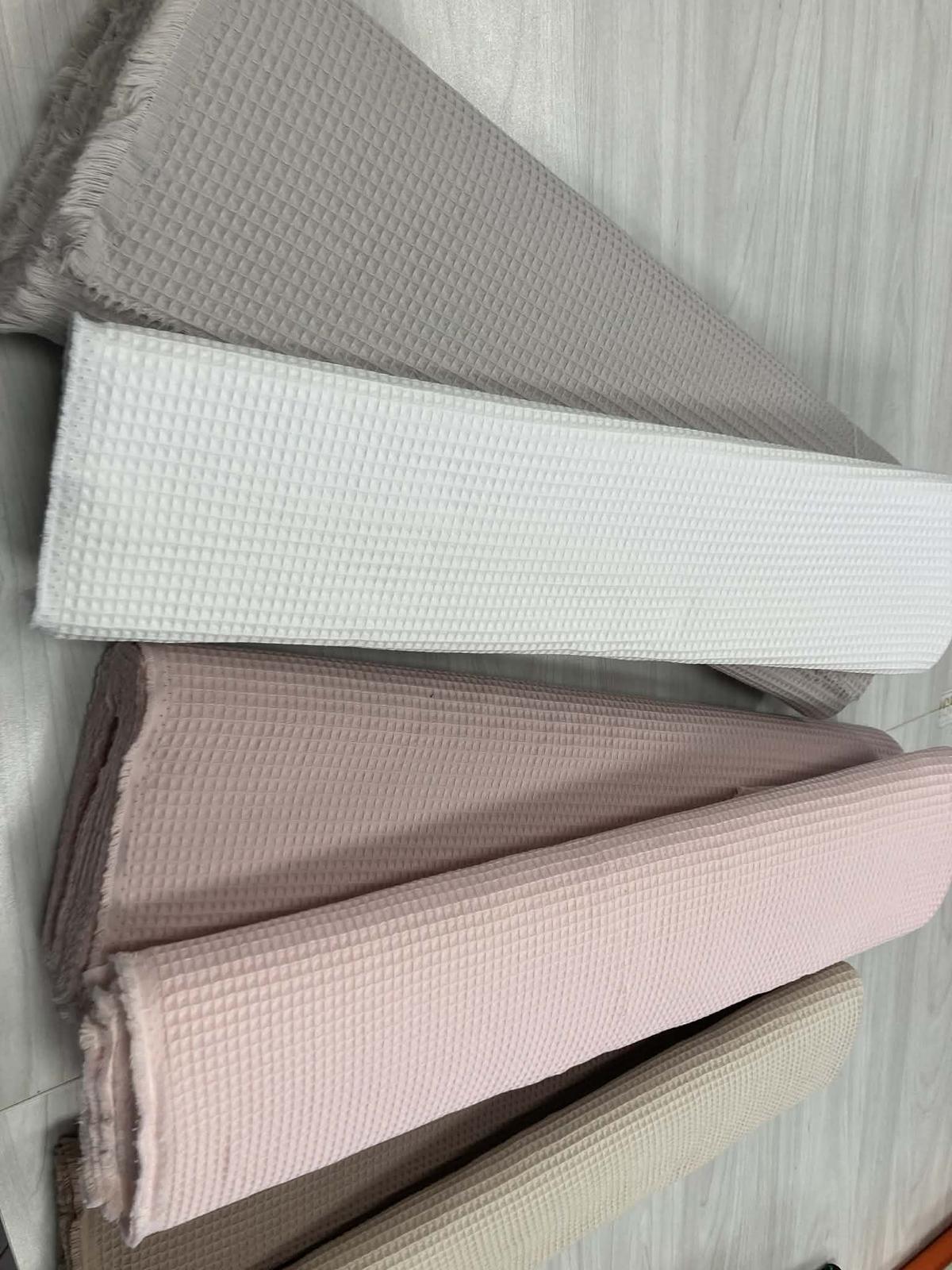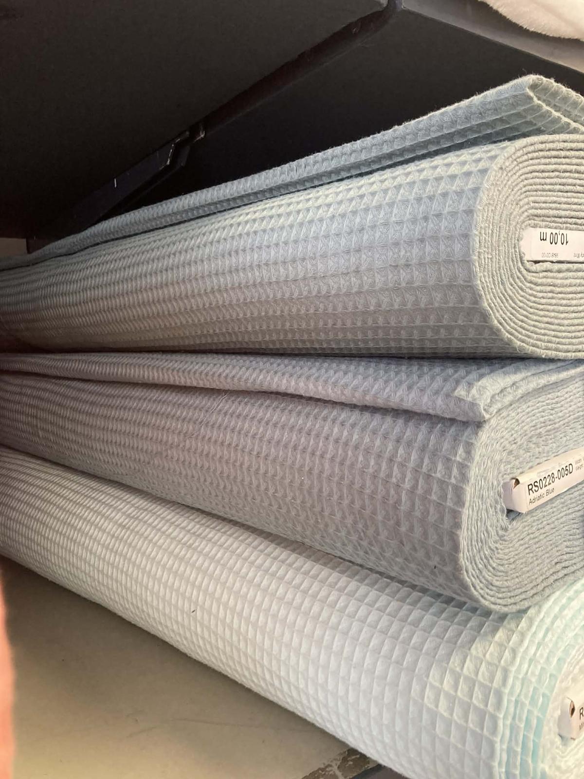 Bavlnenú vaflovú metráž vám ponúkame v gramáži 240 g/m2. Jej použitie je mnohostranné, predovšetkým je ideálna na šitie kúpeľnového sortimentu ako sú uteráky, osušky, turbany, župany, alebo aj kuchynské utierky, či letné deky pre najmenších.