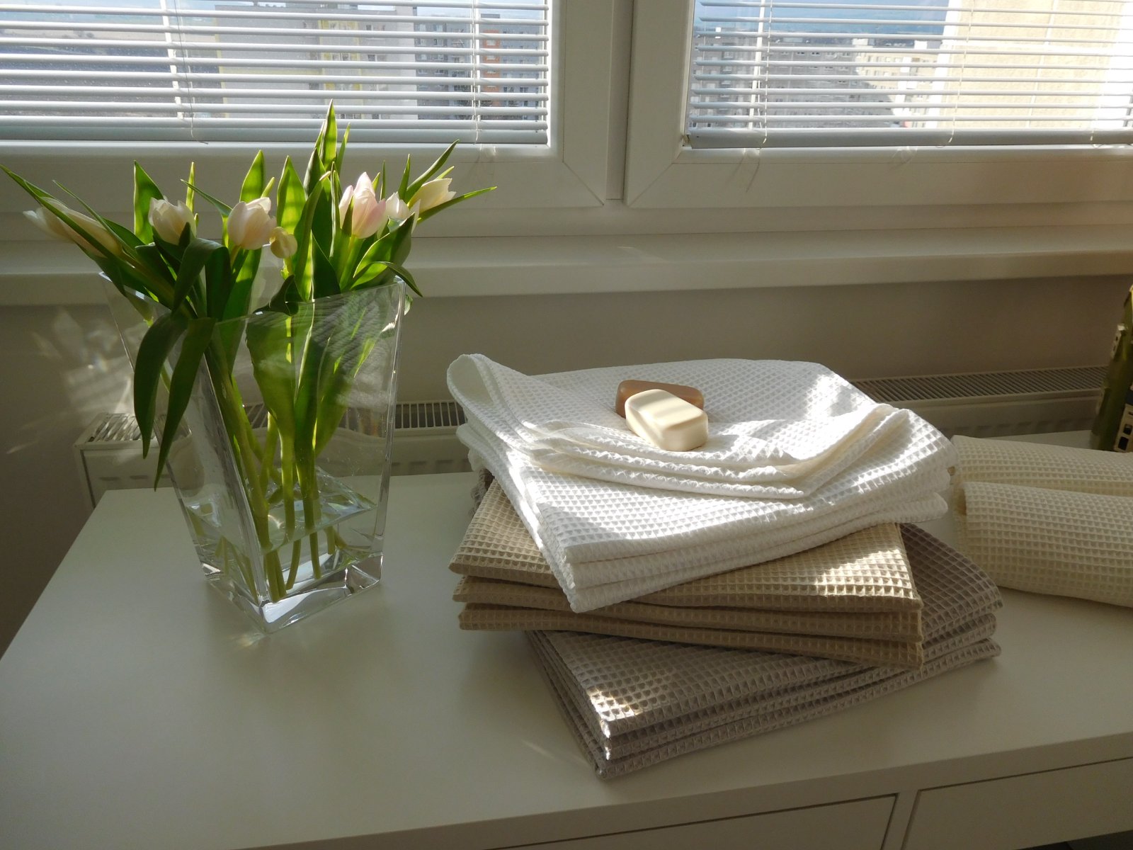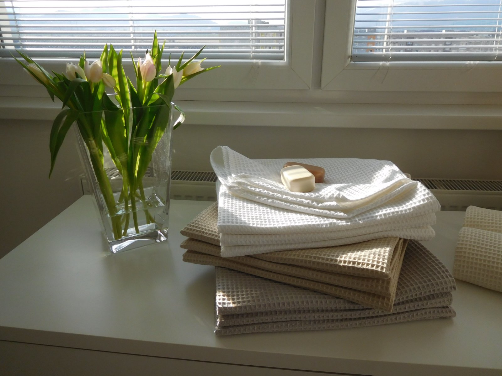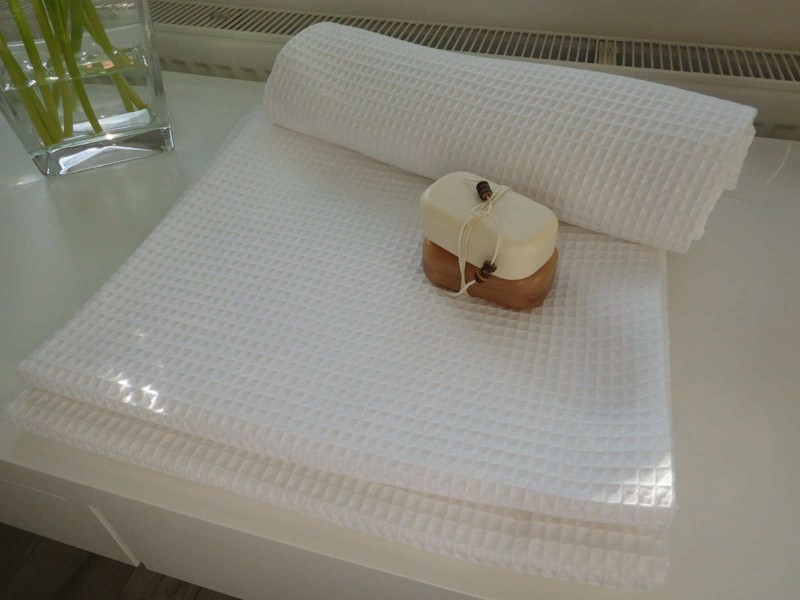 SkladomPonúkam na predaj UTERáKY NOVé Z vaflovej bavlny ktorá má vlastnosti viď foto, o ROZMERE 140 X 70 CM,