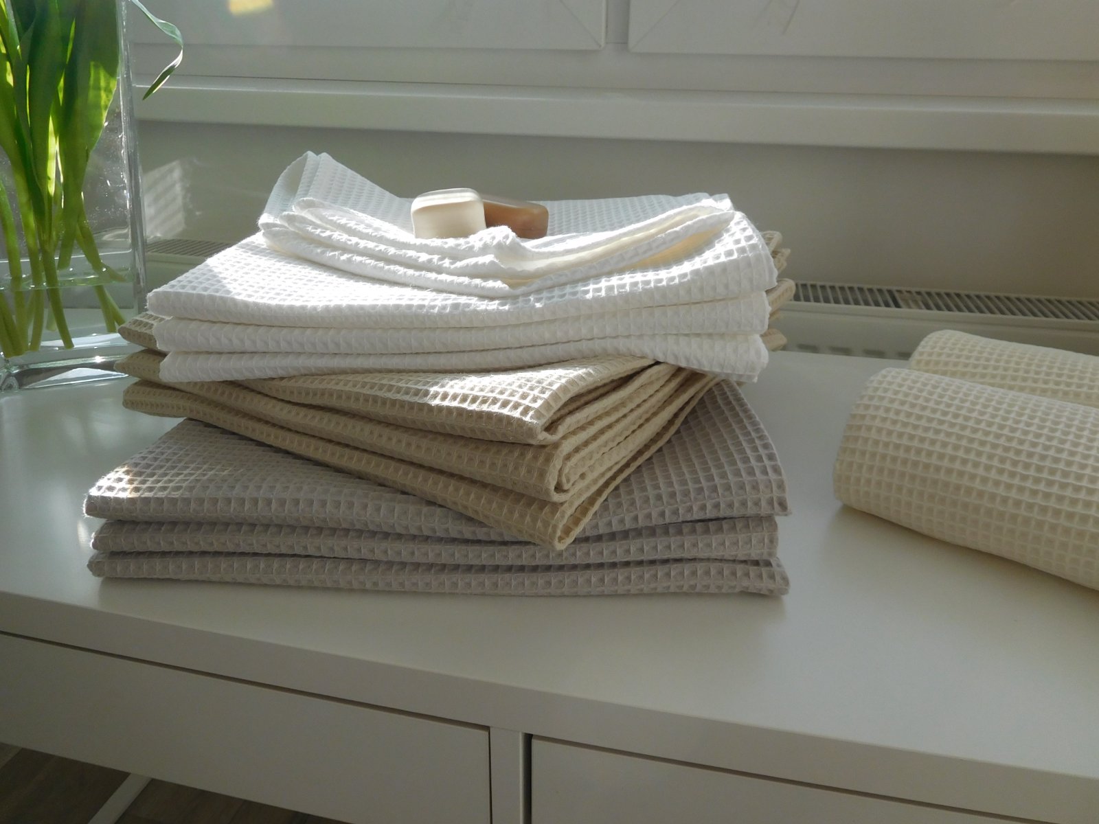 Kvalitná bavlnená mäkká látka s vaflovou väzbou vyrobená zo 100 % organickej bavlny, ktorá sa vyznačuje hlavne svojou výbornou savosťou.
