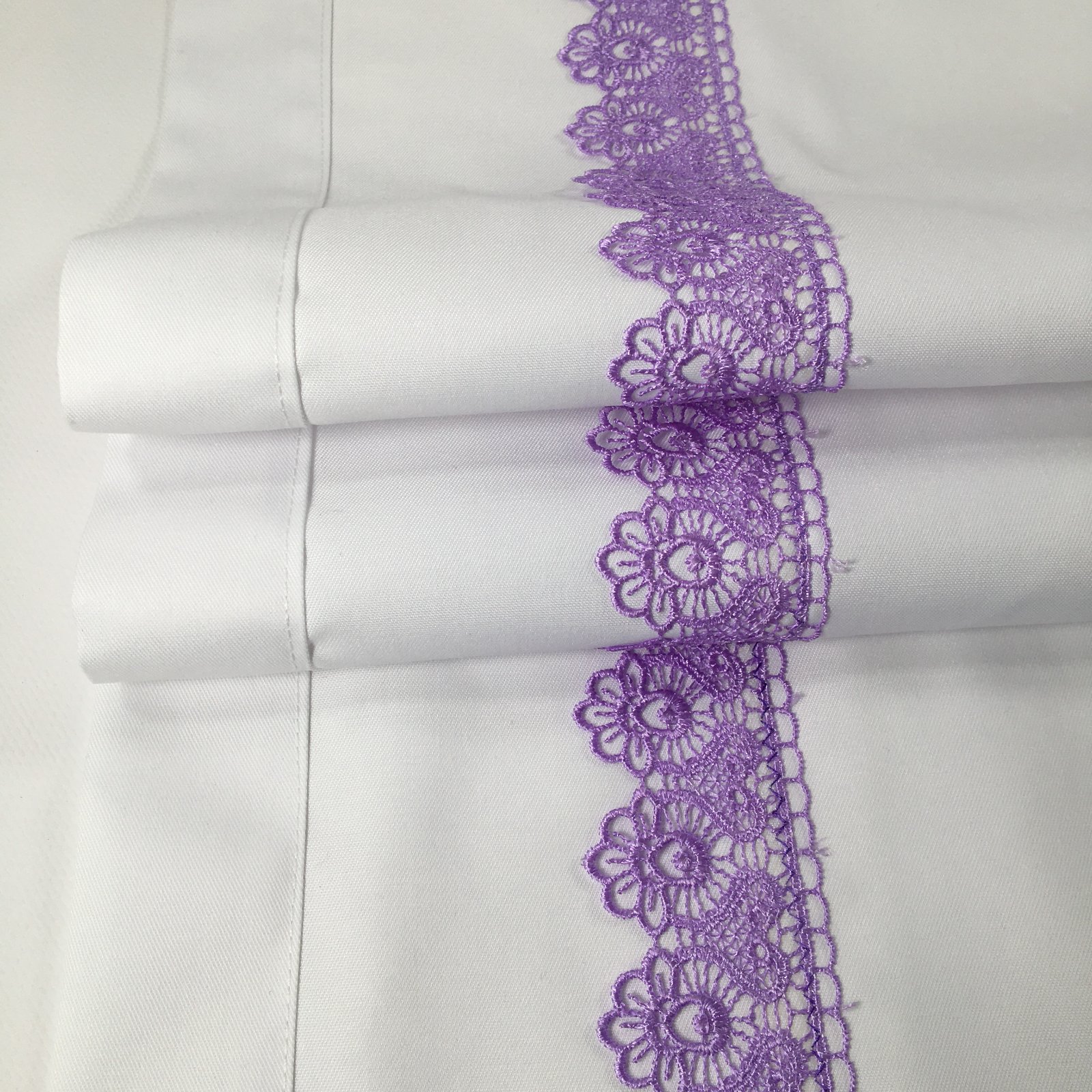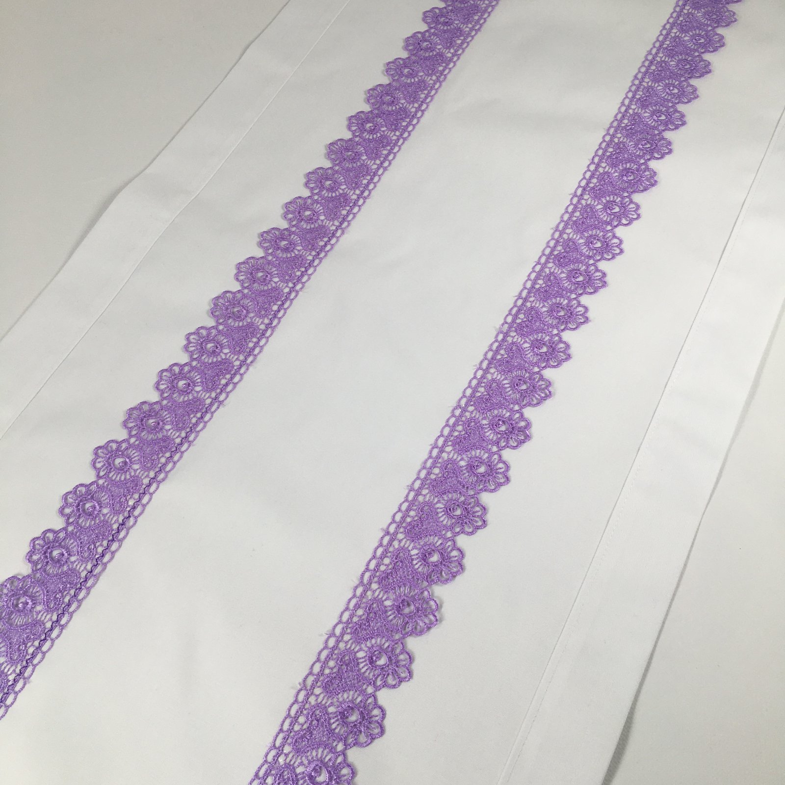 Biely stredový obrus s fialovou krajkou
