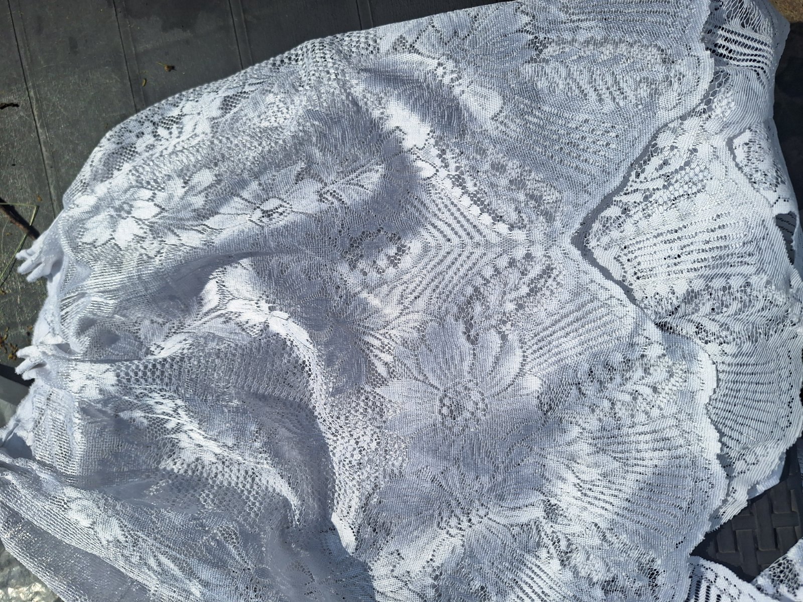 Predám bielu zaclonu z čiernym vzorom, šírka 5,8m a výška 2,5m na vrchu záclony je našita stahovacia šnúrka.