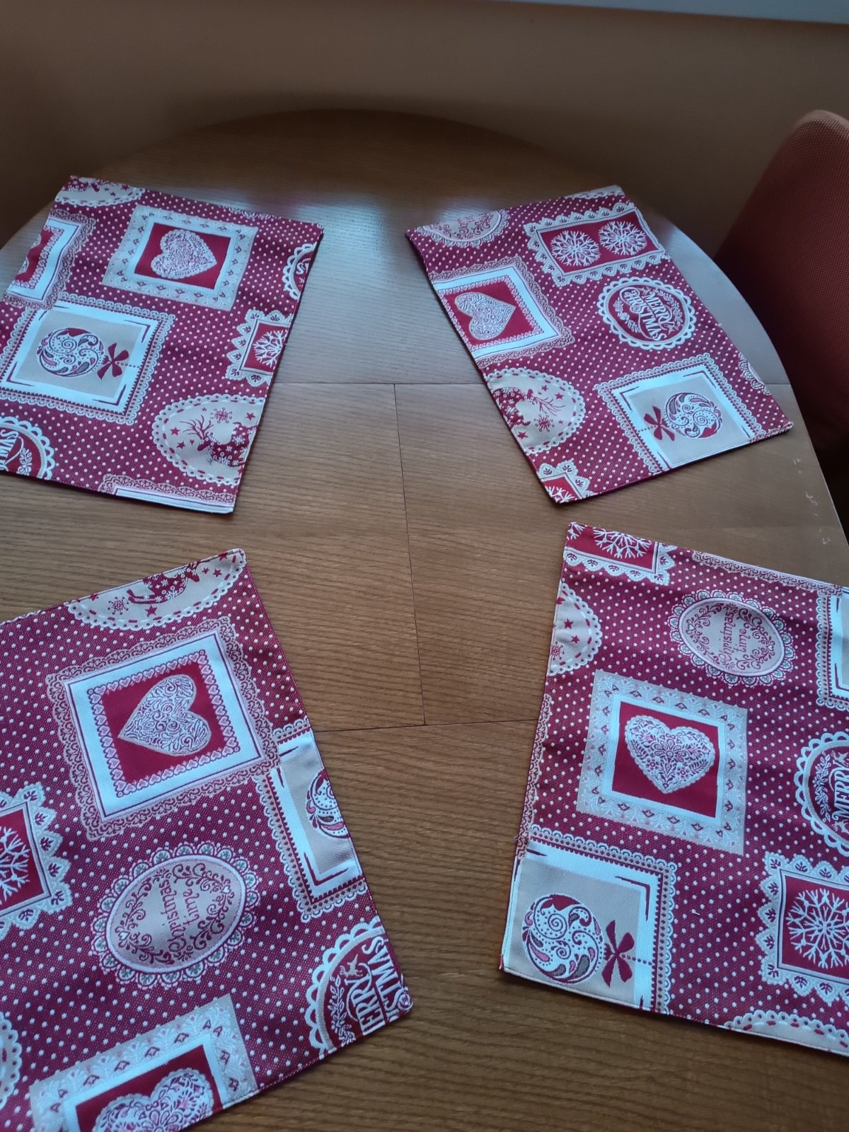 Neboli použité len obal pretrhnutý mala som dve sady jedna mi ostala. Sada pre 4roch 4x veľké 4x malé na poháre 2x stredne asi pod šalátovú misu hrniec na stole🤔