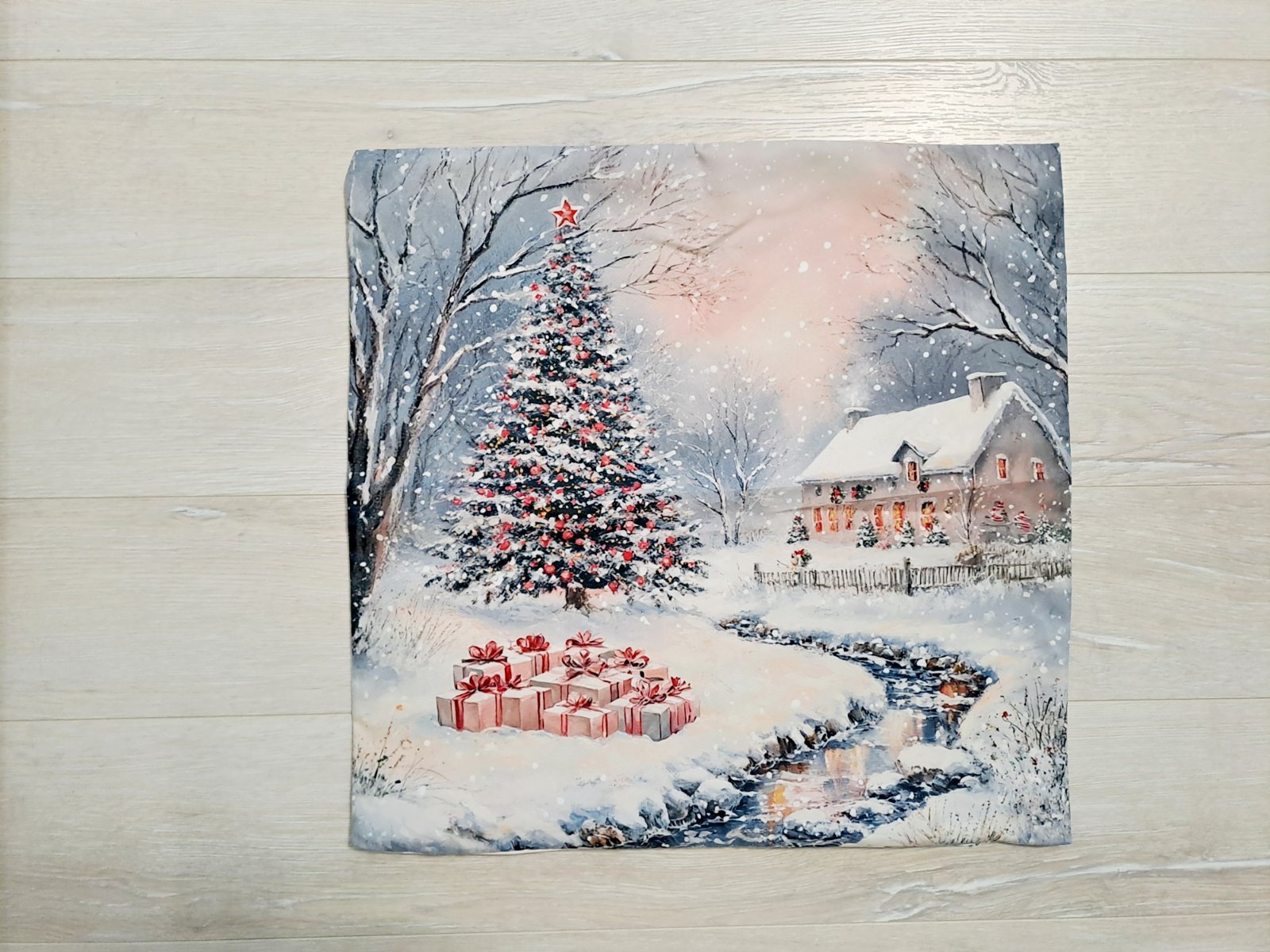 Zasnežený vianočný domček dedinka. 45 x 45 cm. Málo použitá.
