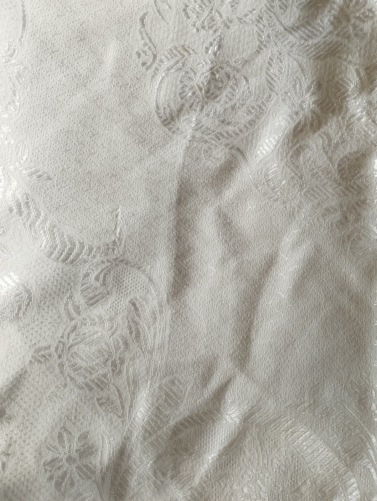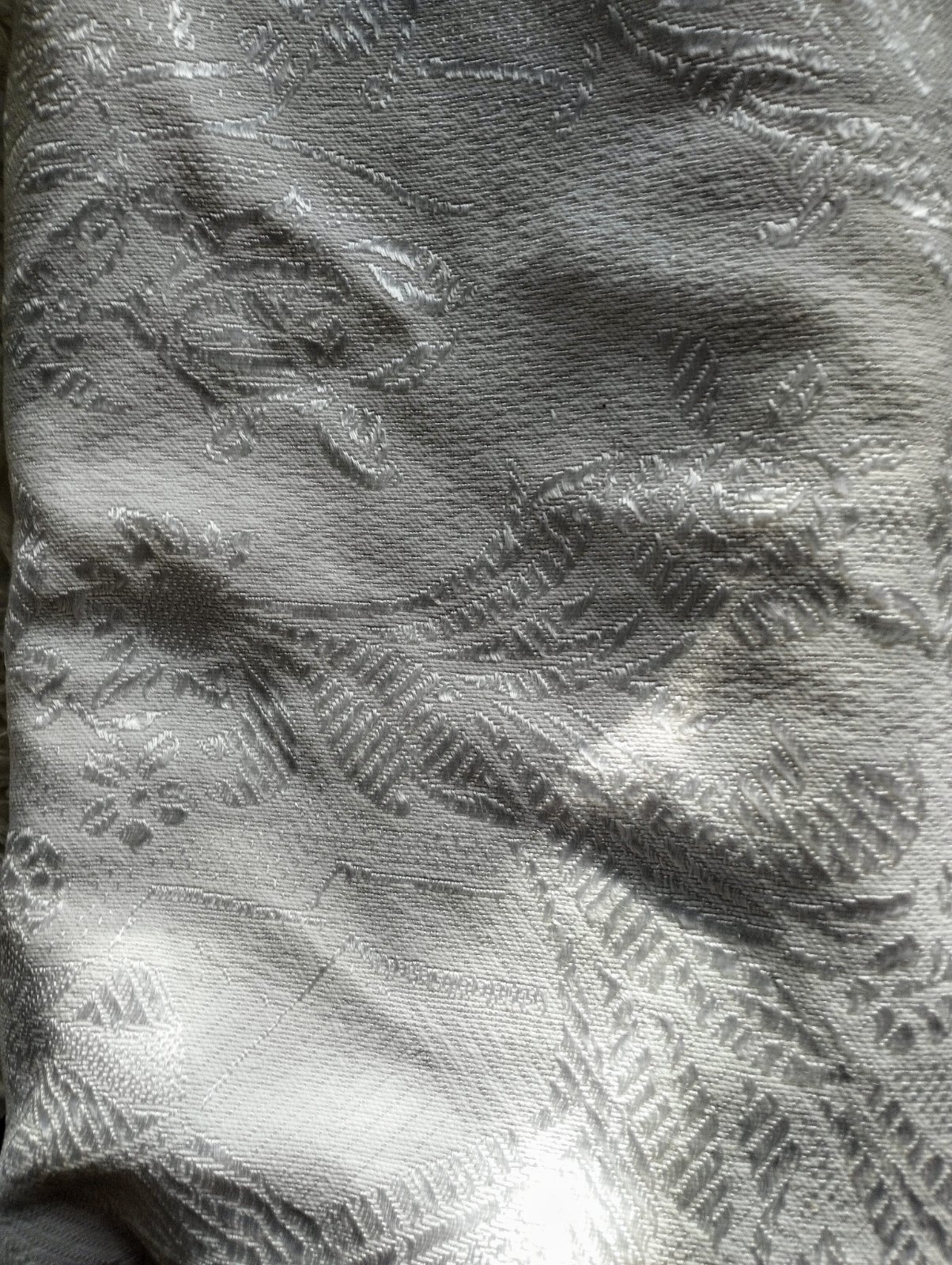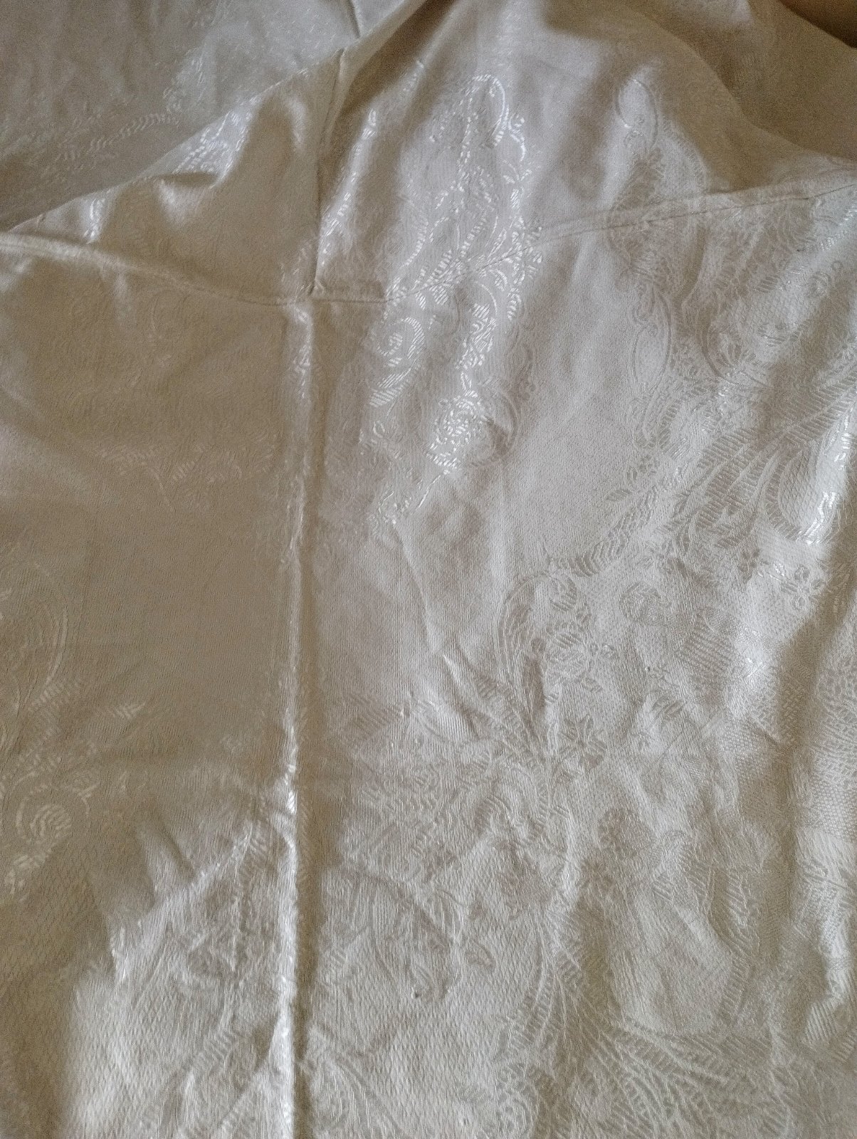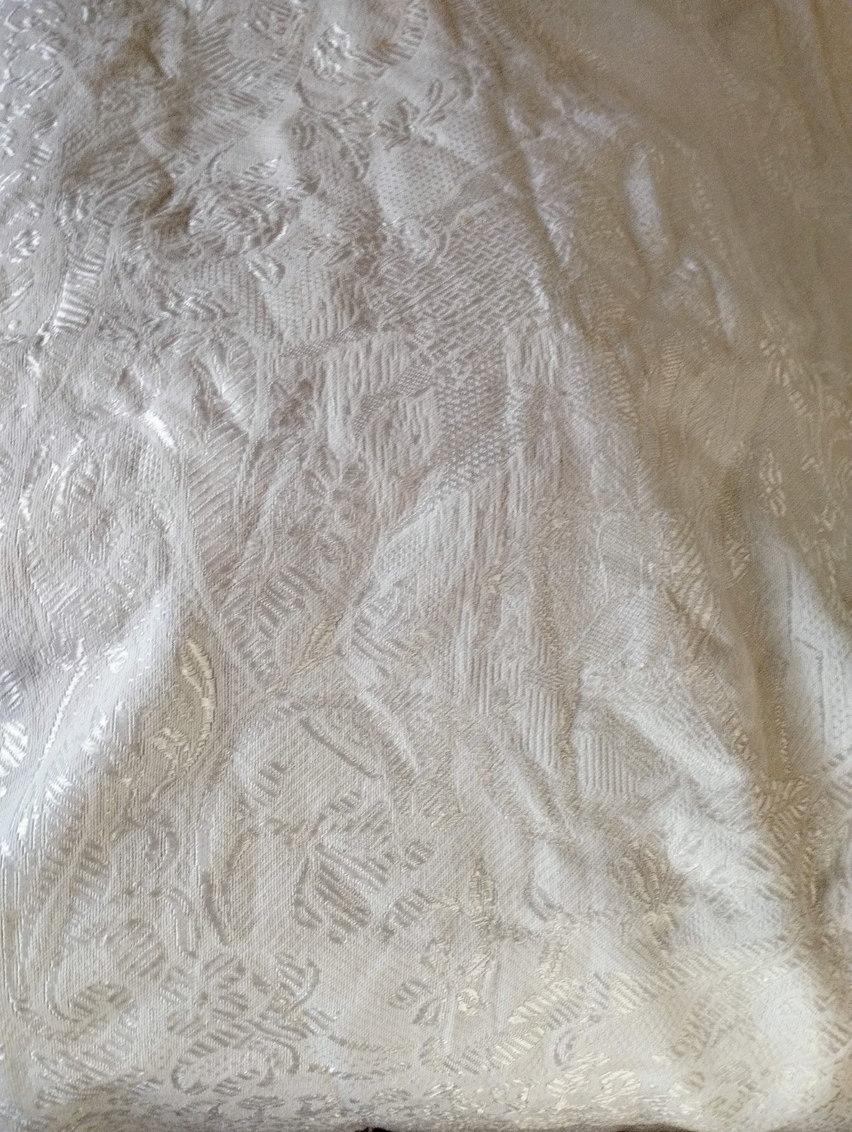 Starý prehoz na posteľ...dlho stal v skrini,v strede zošity...diery nemá len z rubnej strany sem tam malé žlté fľačky,čo sa možno dajú aj vyprať.neskusala som..