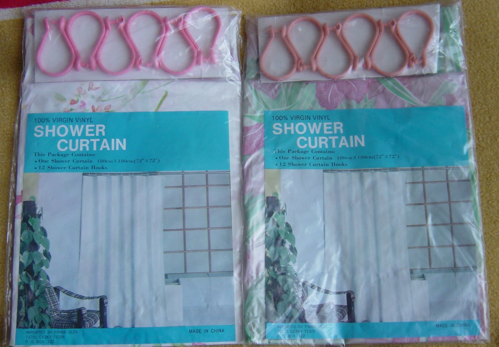 Sprchové závesy vinyl, s kvetovym vzorom, farba biele a priehladne, rozmery 180x180cm, Súčasťou balenia je 12 háčikov = 4eur za kus