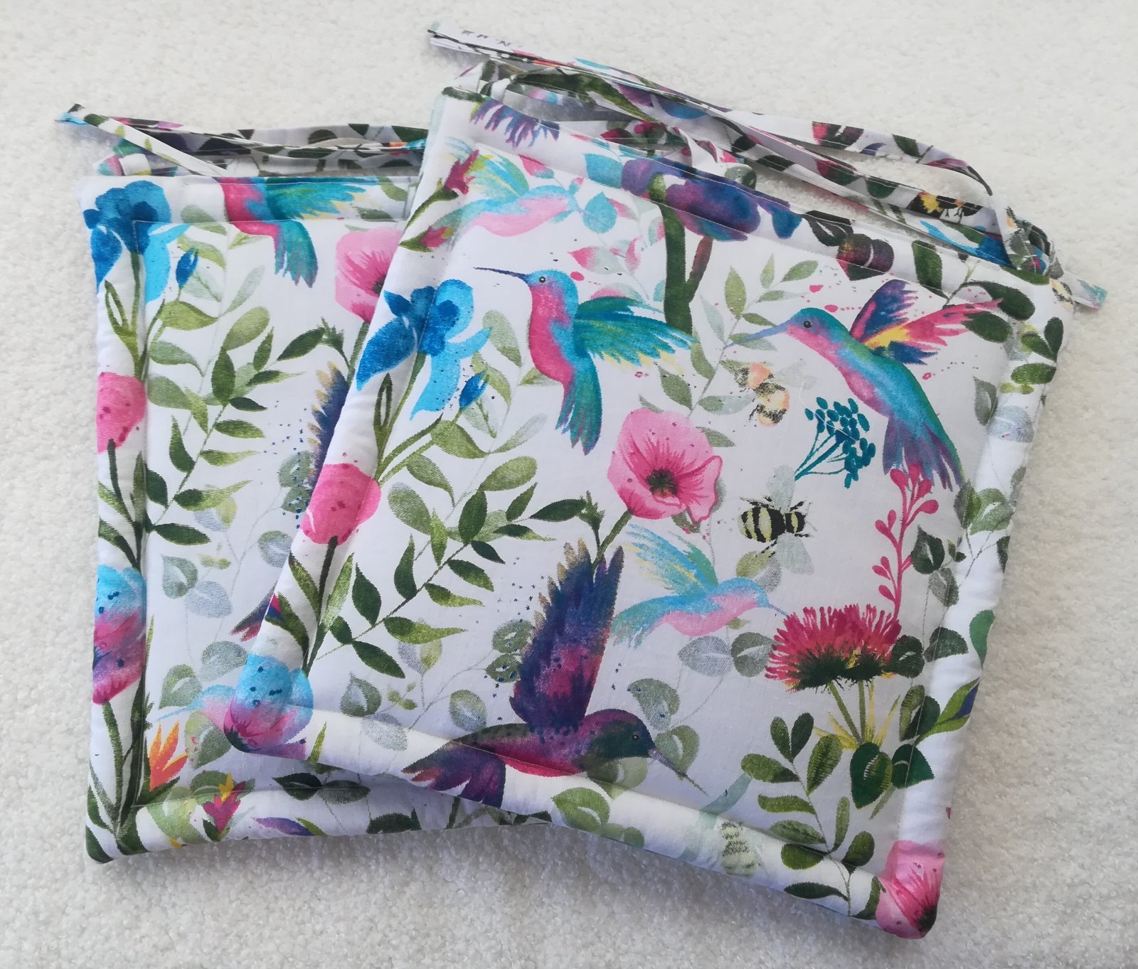 ⭐ Podsedáky sú zo 100% bavlnenej látky, vyplnené 2 cm vatelínom a oštepovala som okolo celého obvodu, taktiež som prišila viazanie na uväzovanie ku stoličke. Tieto sú s viazaním dozvedu