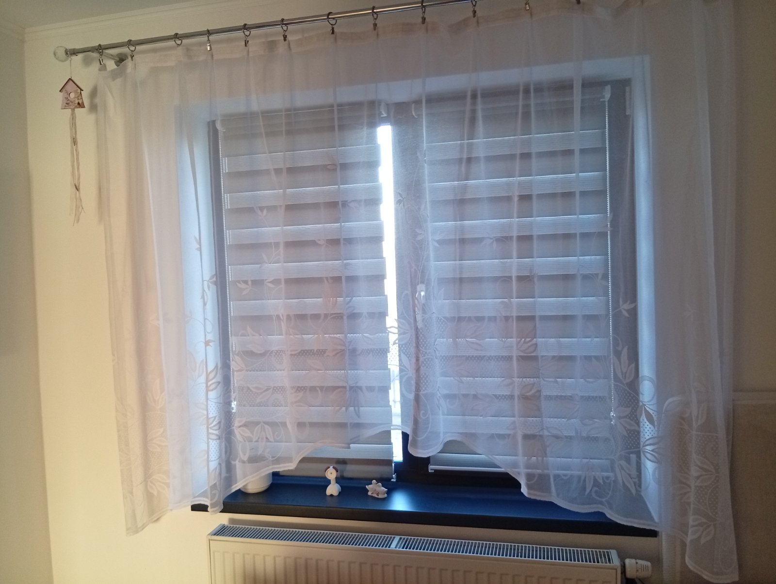 Výška záclony je 145cm a šírku si možno regulovať snurkami
