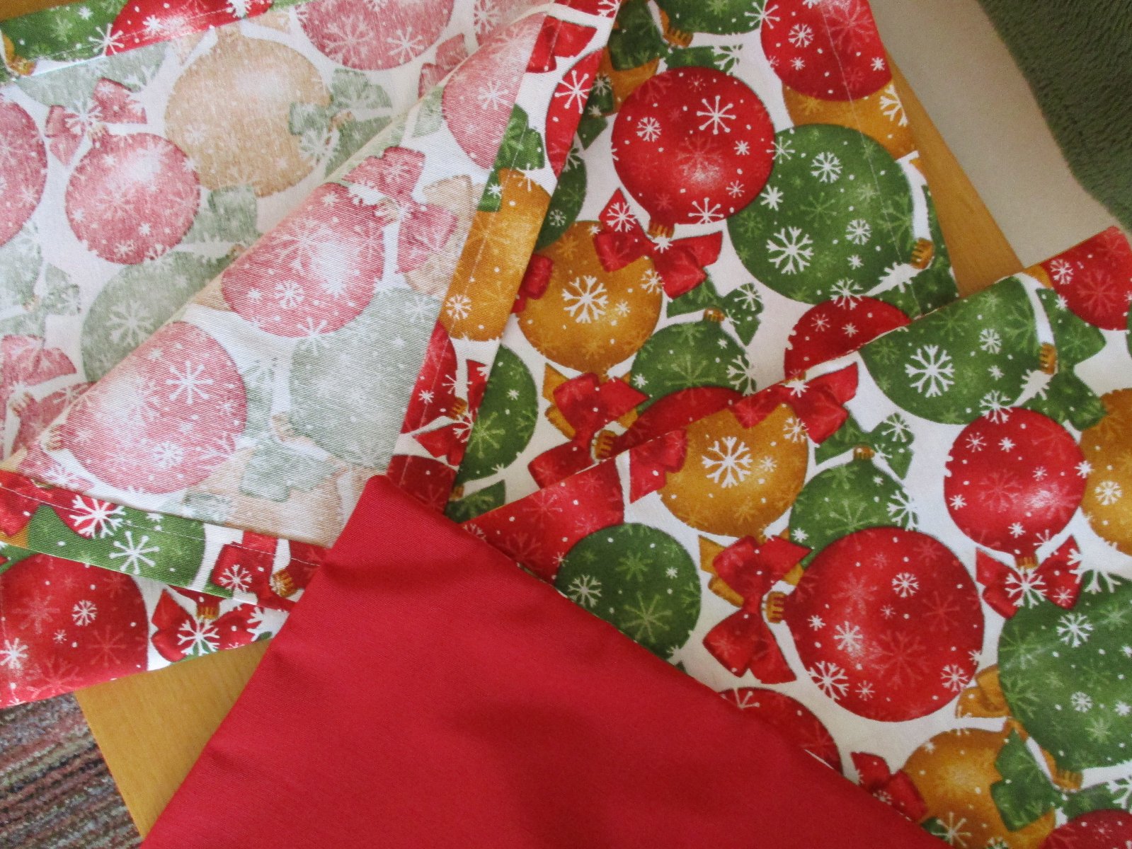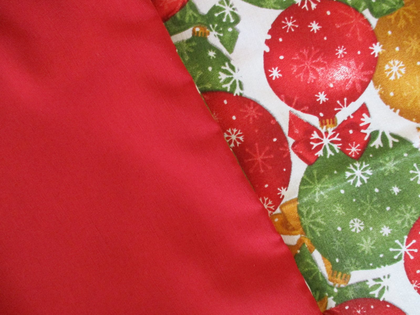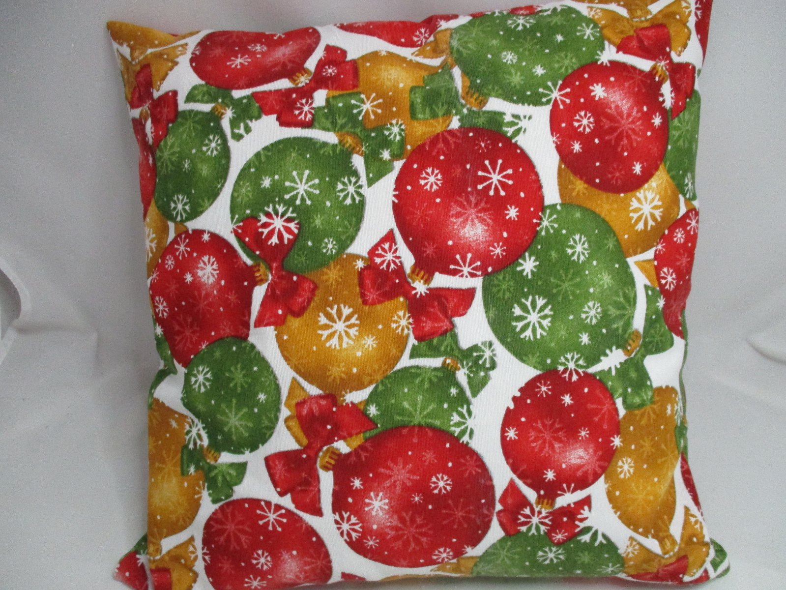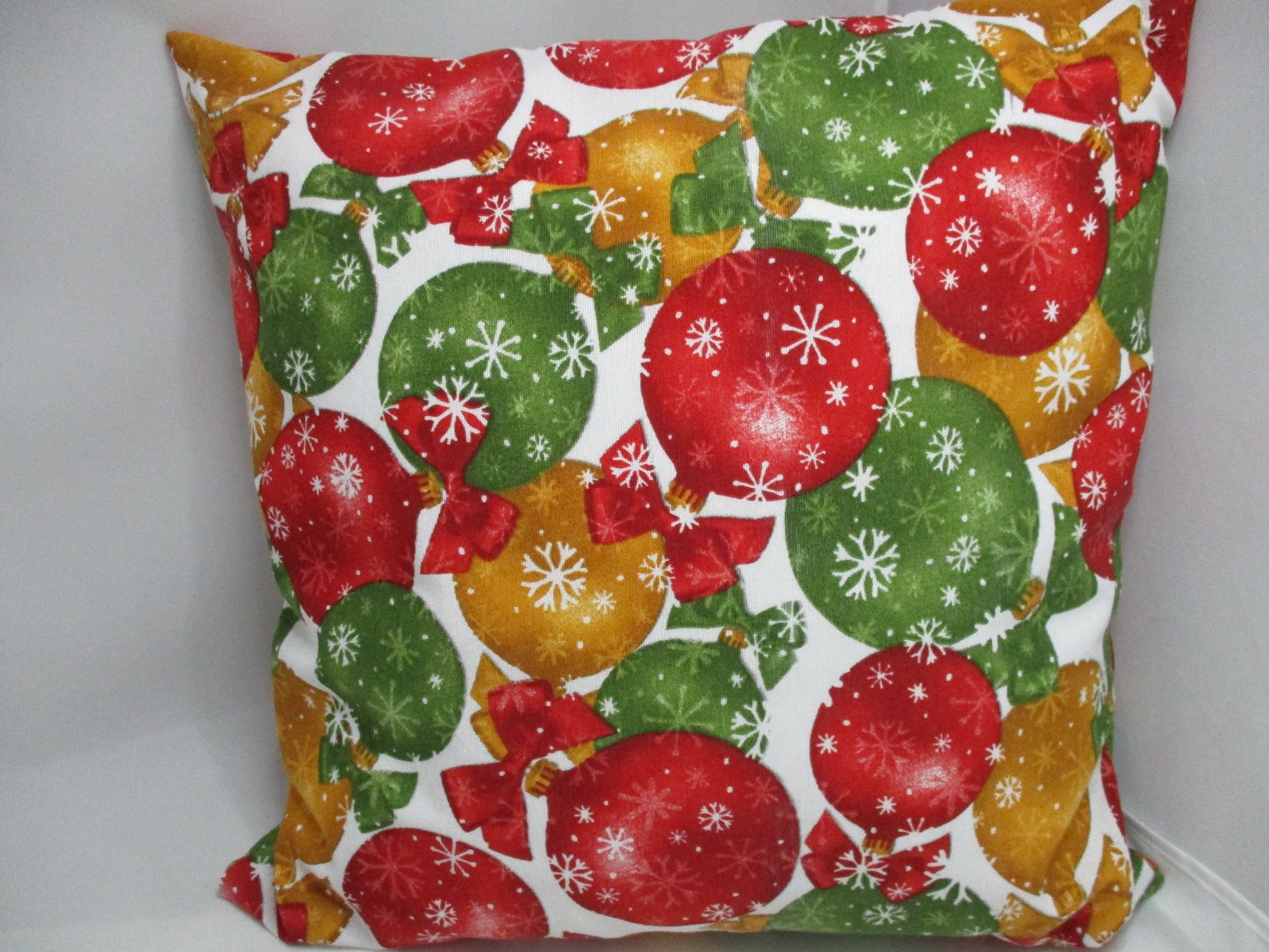 Obliečka ušitá z kvalitnej pevnej zmesovej bavlnenej látky s motívom vianočných gulí po oboch stranách, druhá obliečka je ušitá z jednej strany s motívom a z druhej strany je jednofarebná červená látka. rozmer u oboch je 40x40cm; cena za jednu 6,-€ + poštovné