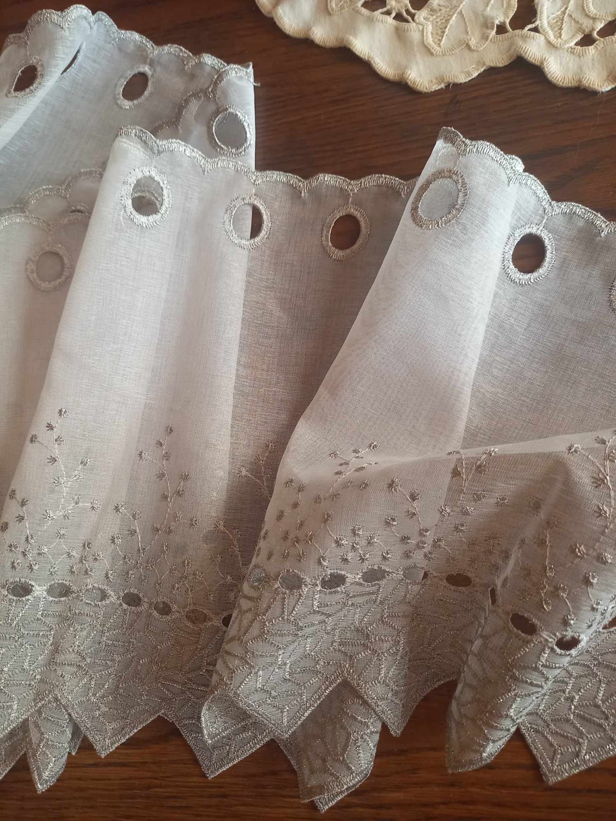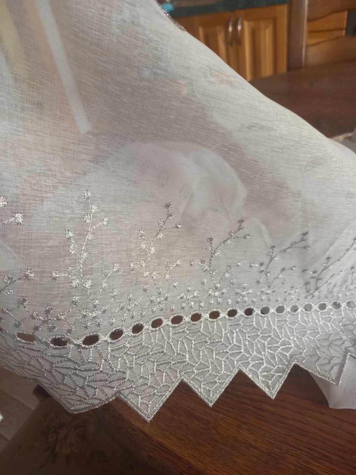 záclona je nová, biela, vyšívaná sivou niťou, dĺžka záclony 190cm, šírka 30cm, mám rovnaké 2 kusy, cena za kus