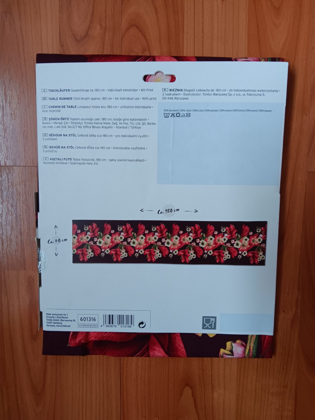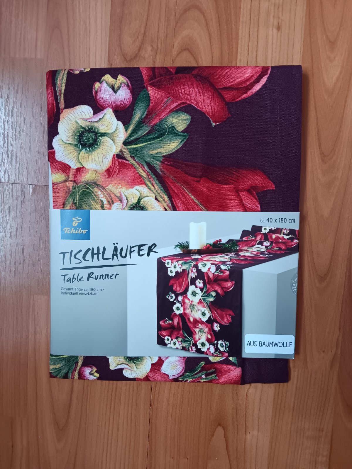 Predám nový obrus (behúň) na stôl. Kupovaný v tchibe, rozmer: 40x180 cm, materiál: bavlna.