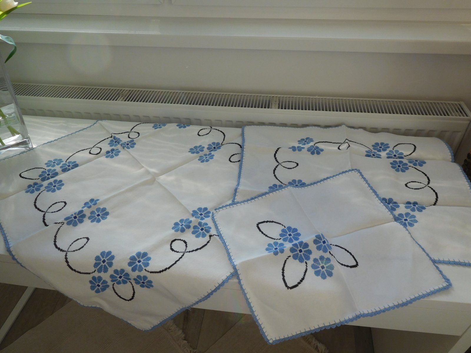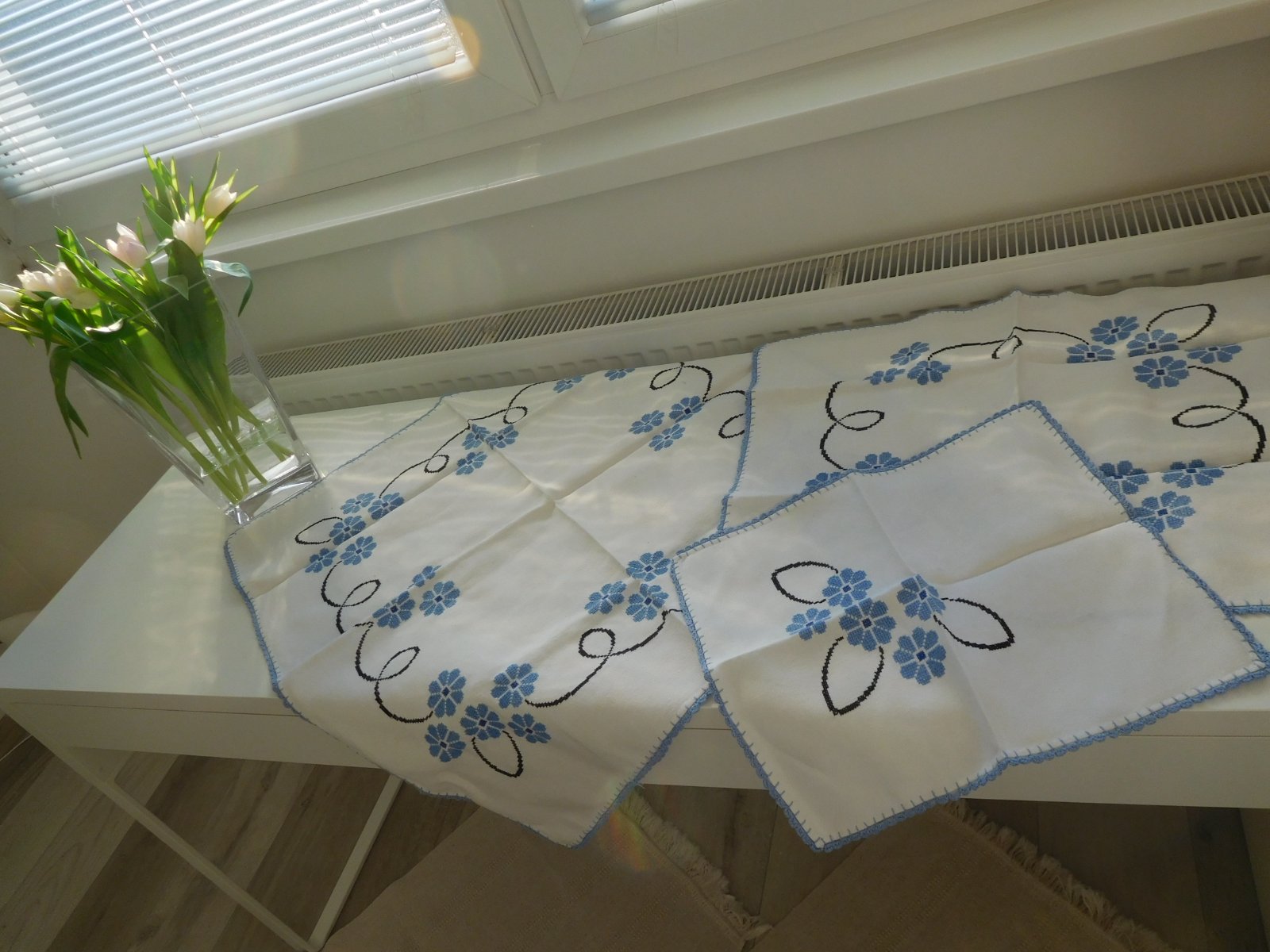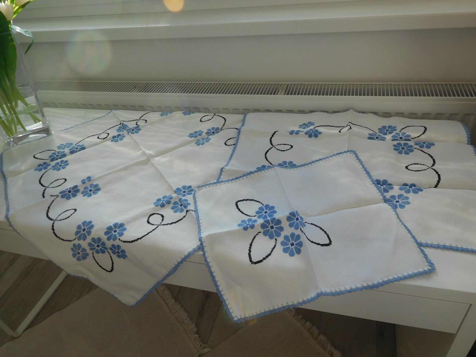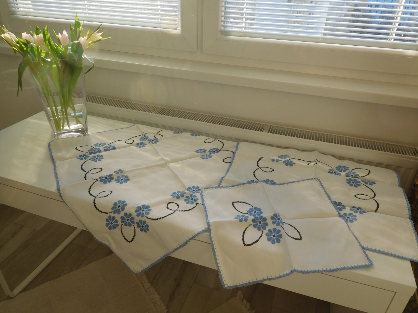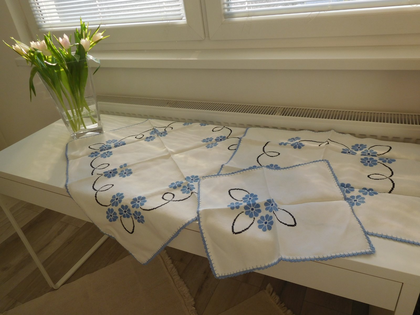 Ručne vyšívaný obrus štvorec 58 CM, plus 3 malé obrúsky. Kvalitná bavlna.
