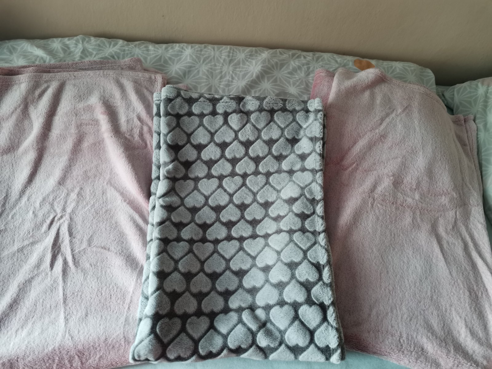 Dve deky ružové rozmer 140 na 200, jedna šedá 130 na 170, osobný odber v Humennom.Deky su krásne ružové čiste len mobil to nejak divne odfotil., osobný odber v Humennom ci cez Packetu za 3,40.