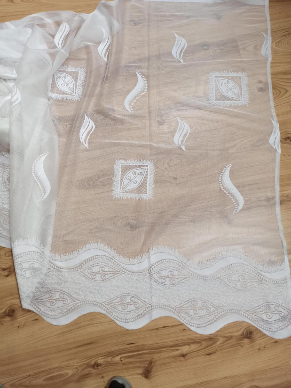 Ponúkam silonovu vyšívanu a lemovanu záclonu výška je 147 cm a šírka. 3,80 cm raz použitá mam toho veľa