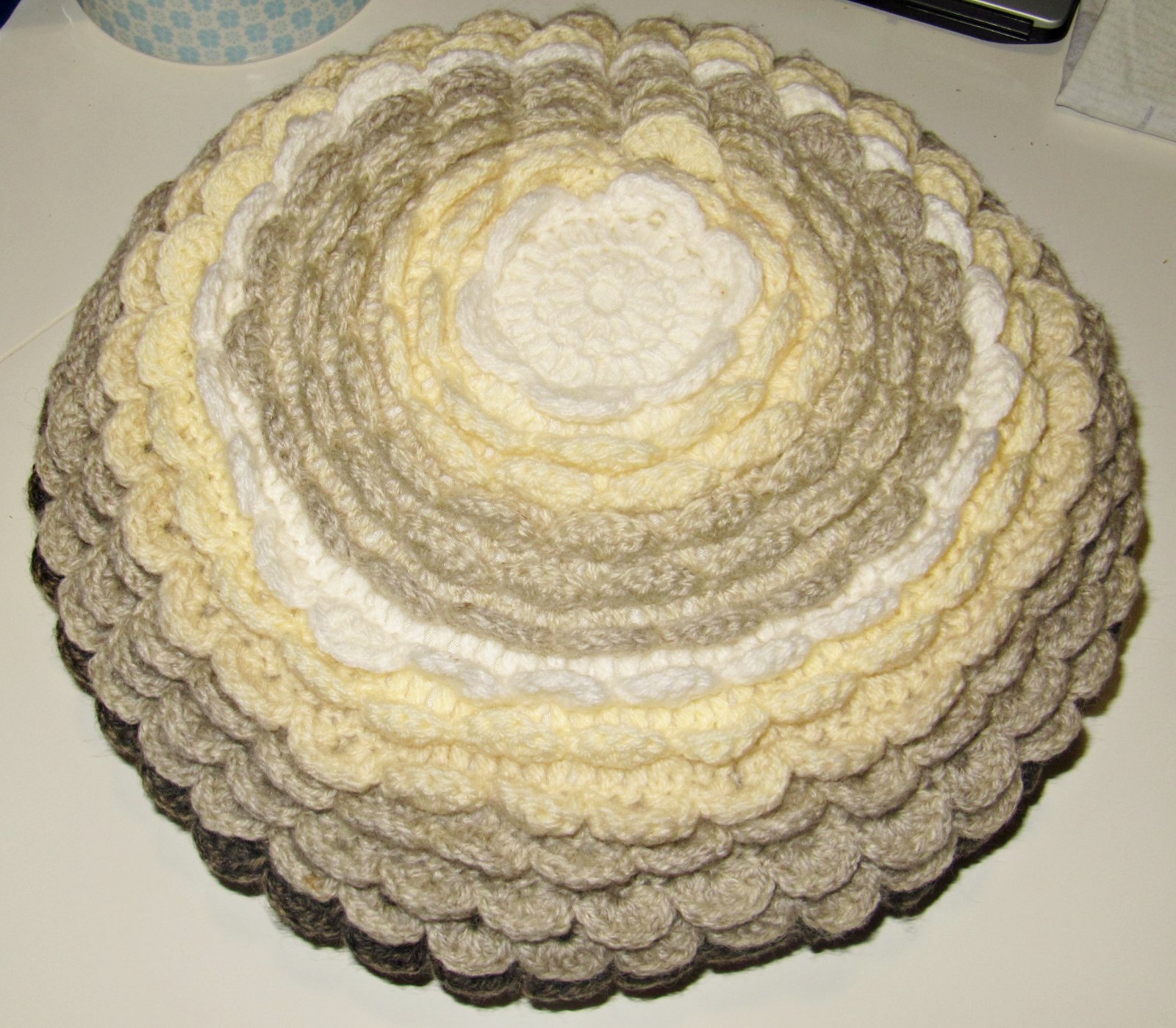 Mám na predaj háčkovaný vankúš v tvare veľkého kvetu. Priemer 37 cm. Poštovné je 3,50 eur platba vopred na účet. Je možný aj osobný odber.