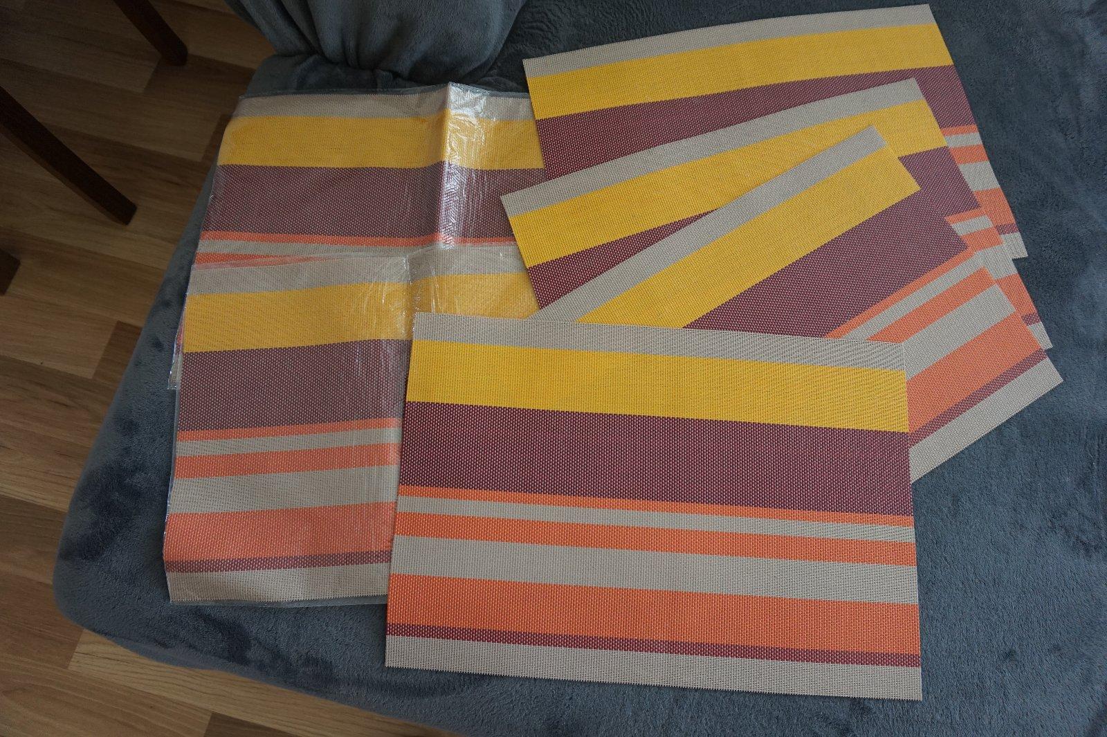 Predám tieto krásne prestierania. Menili sme farbu interiéru a už sa nám nehodia :-/ Sú vo výbornom stave, ako nové. Výborne sa čistia. Dve sú dokonca ešte zabalené. Rozmer je 46 x 31 cm, ale dajú sa odstrihnúť ak by ste potrebovali menšie. Vlákna sa určite nebudú ťahať.