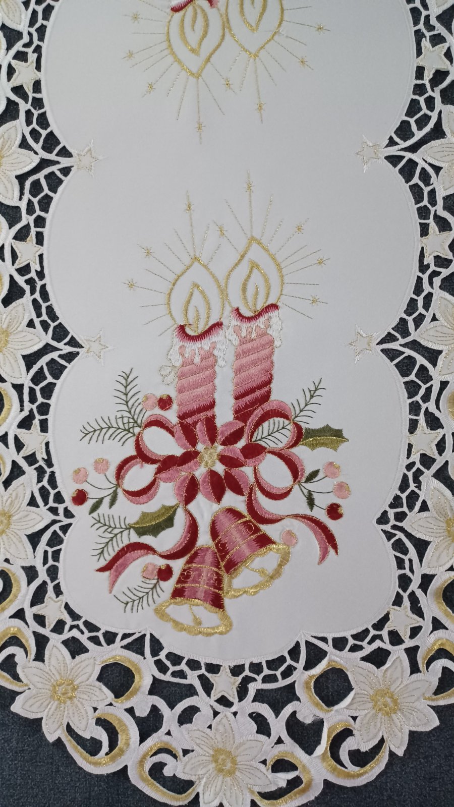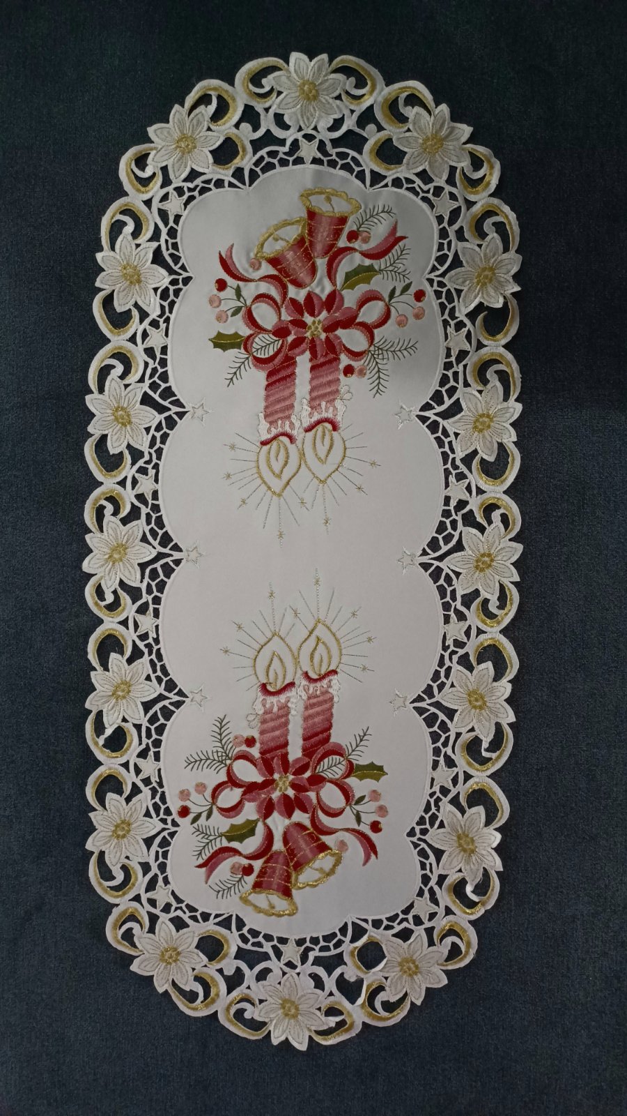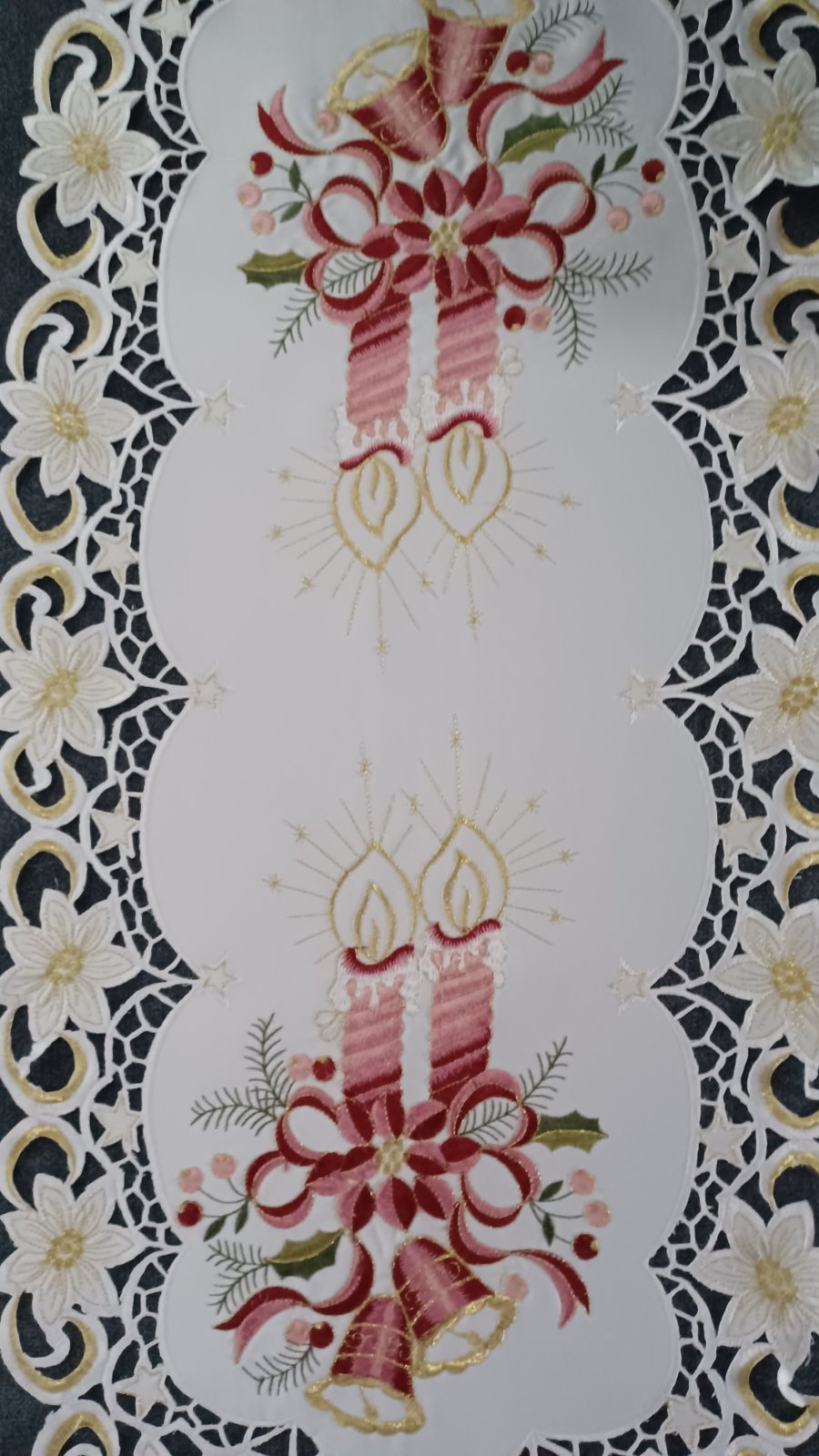 Predám vianočný obrus rozmer:85cm x 38cm. Obrus je skoro nový.