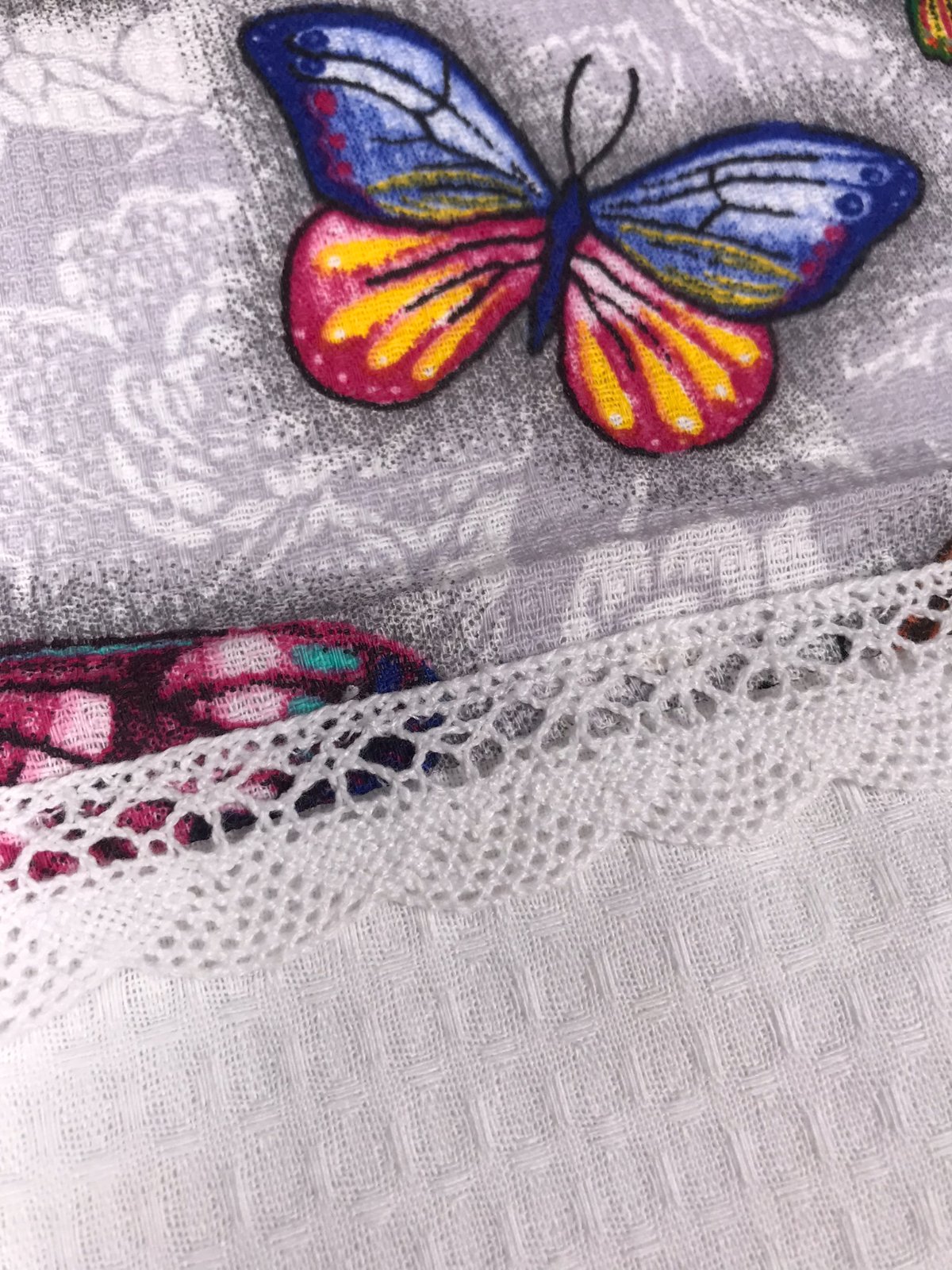 Nové, romantické, dekoračné aj praktické. 100% kvalitná bavlna. V súprave je jedna utierka s bielou časťou a krajkou a druhá len motýle.