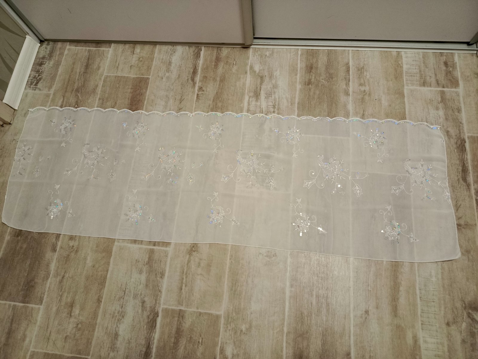 Výška záclony je 145cm a šírku si možno regulovať snurkami