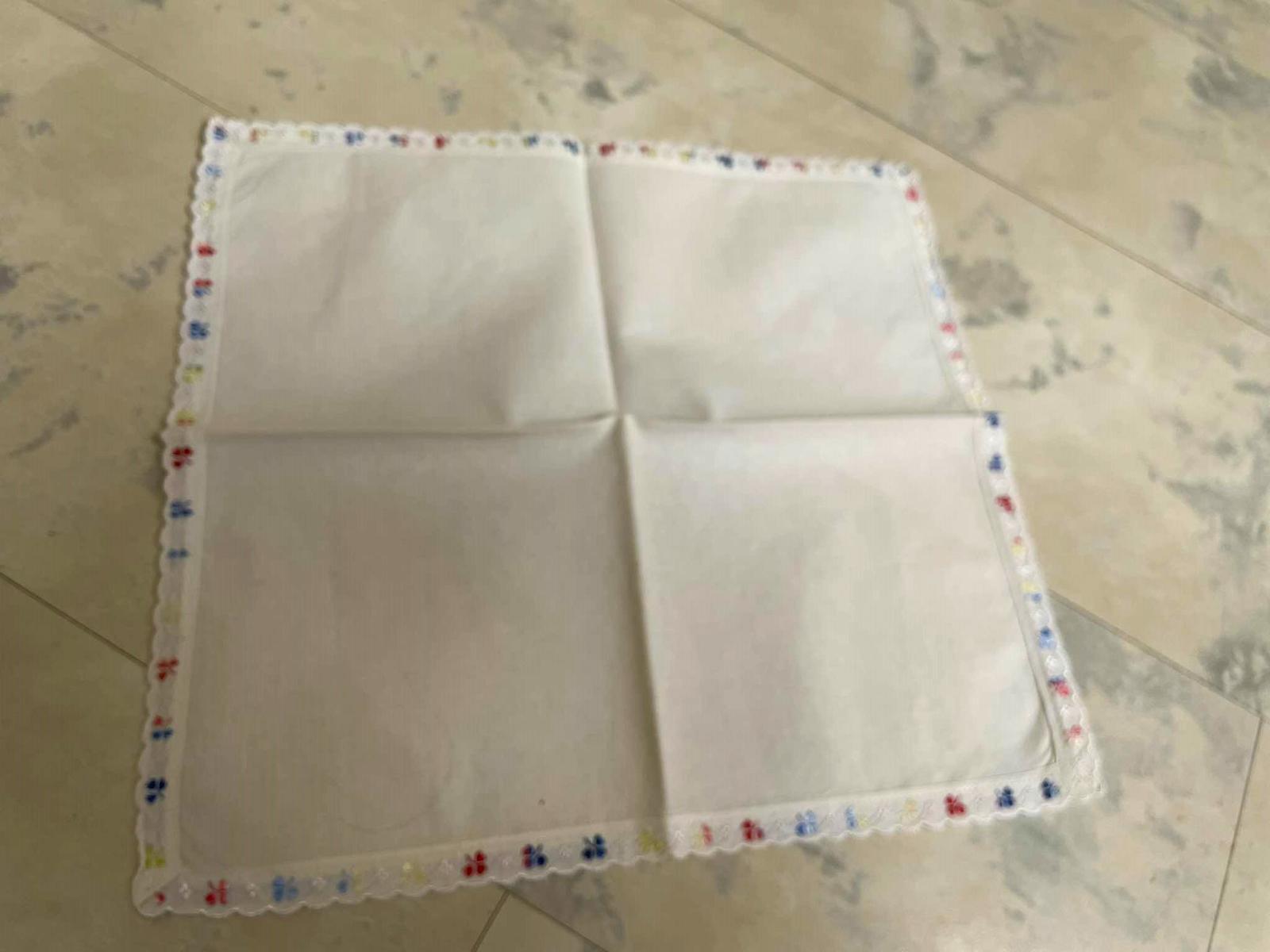 použitý 1 x na zakrytie veľkonočného košíčka,krásne obšitý,100% bavlna - top stav, 30 x 30 cm,vhodné aj pri servírovaní chlebíka do košíčka