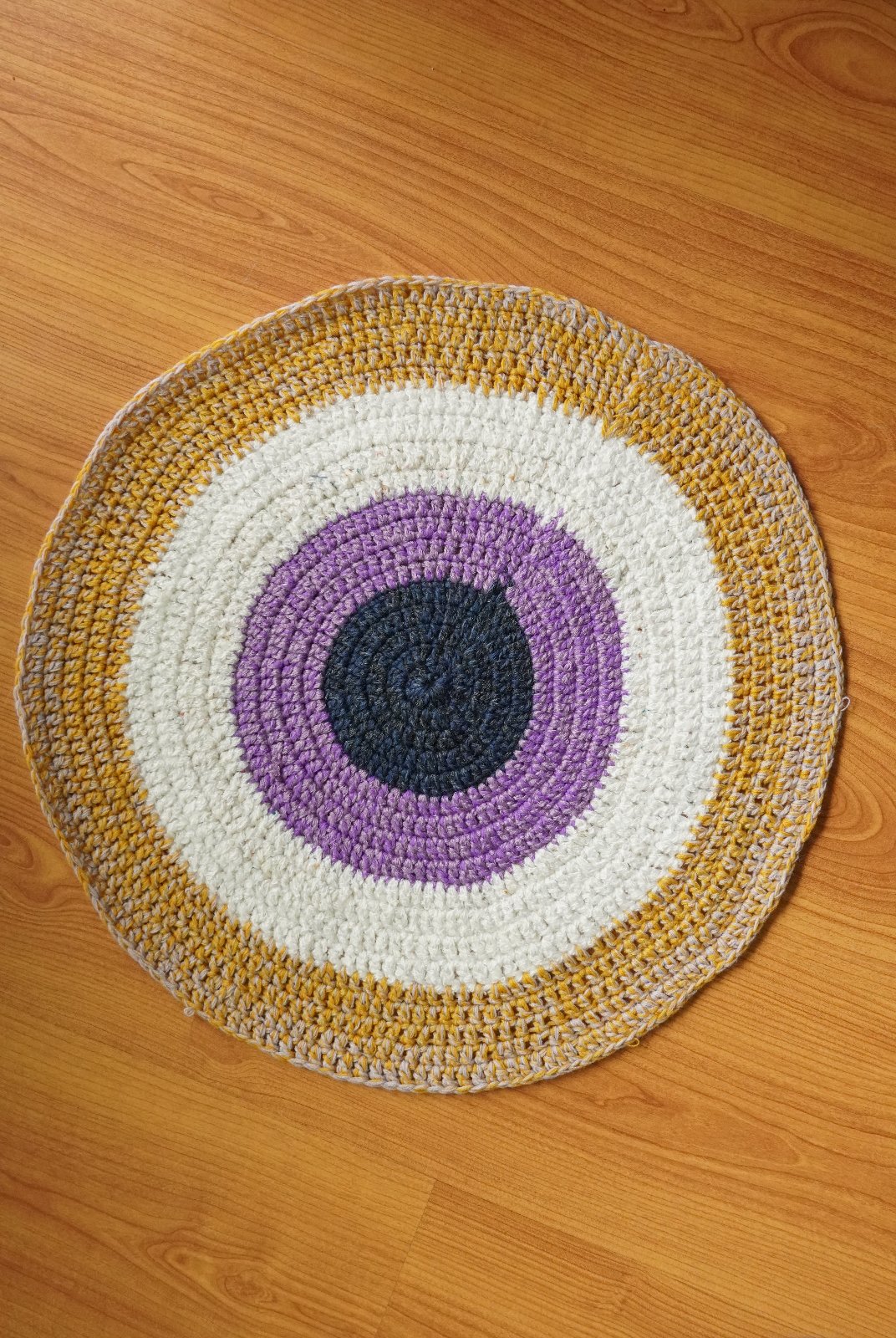 Farebné hačkované prestierania na stôl, stolík, poličku, pod kvetináč alebo vázu. Je to ručná práca, preto nie sú perfektné - pozrite fotky. Používané krátko.