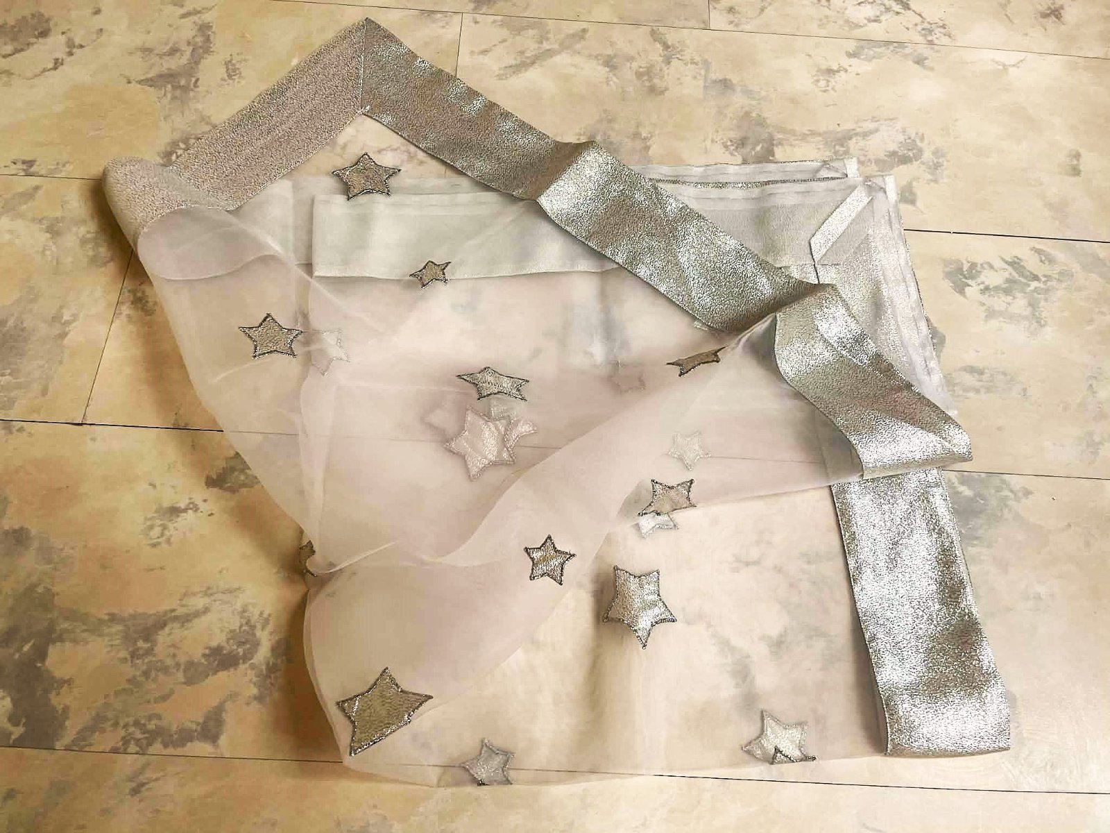 nádherný luxusný štvorcový obrus ,85 x 85 cm, použitý na 1 Vianoce,krásne jemné aplikácie hviezdičiek,boky,jemný syntetický lurex,krásne vypracovaný,dá sa pekne oprať,vyzerá to super samostatne a aj ako vrchný obrus na červený,biely,alebo iný podklad