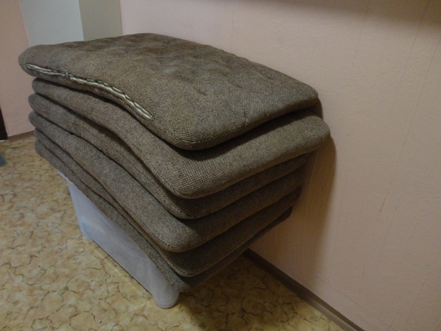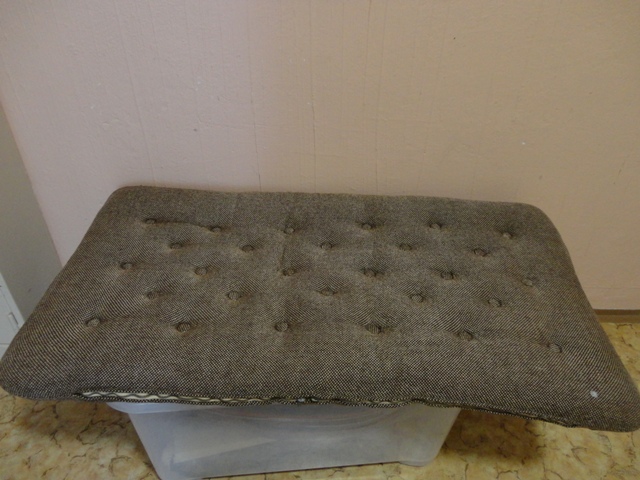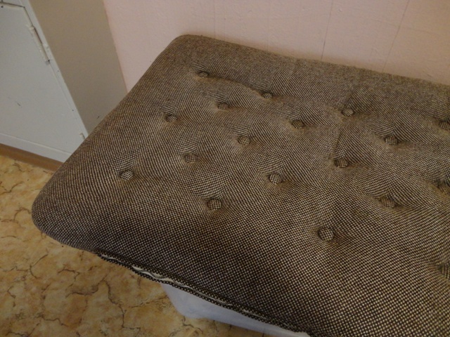 Rozmery: dl.- 117 cm, Š – 62 cm, hrúbka – 7 cm. (Keby sa opäť použil na sedenie: sedacia časť a opierka – 44 x 71 cm.)