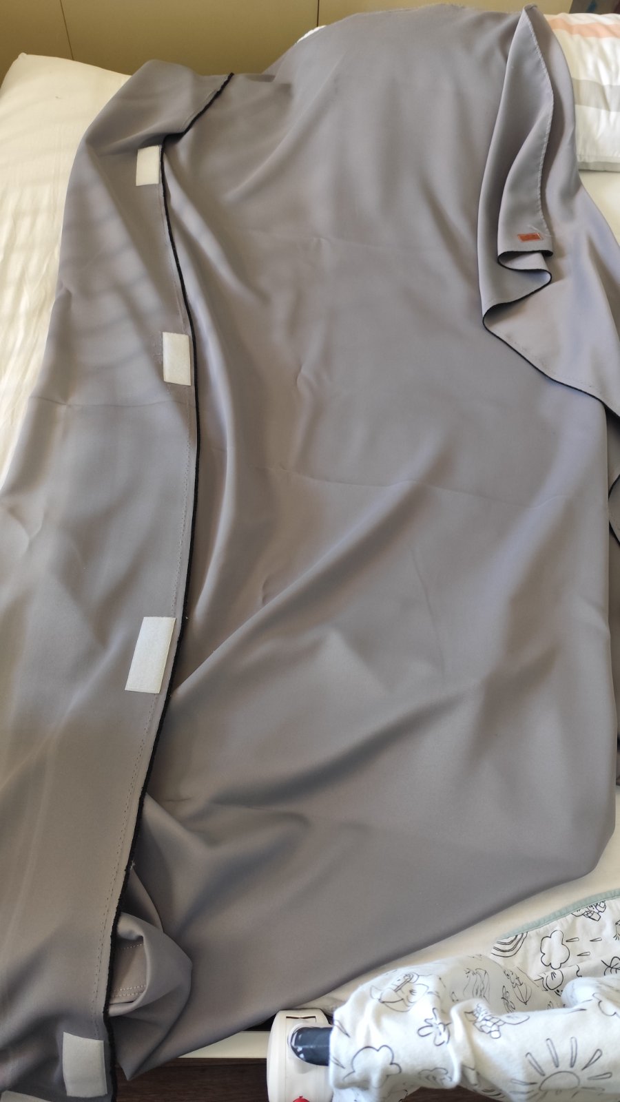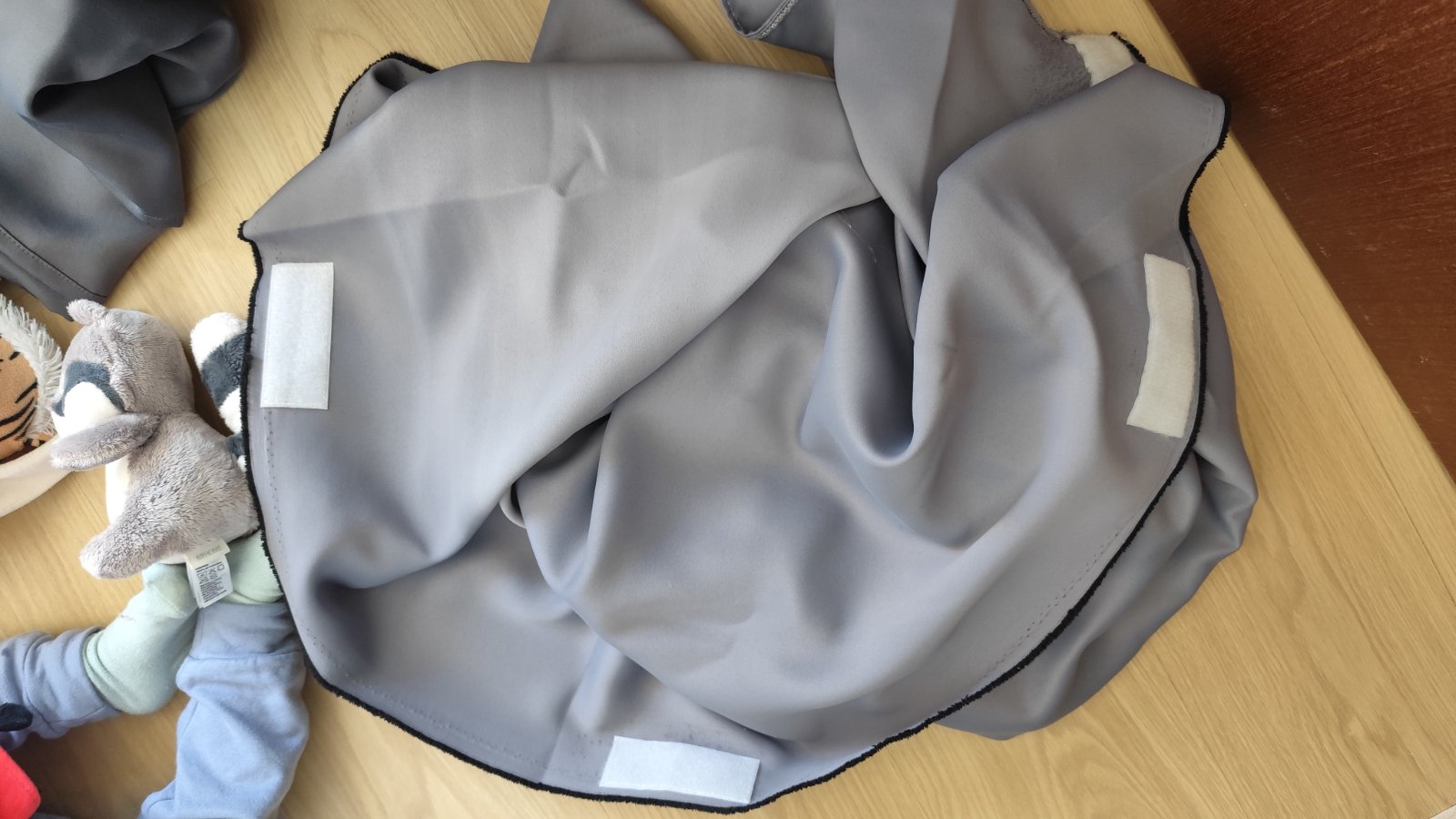 Prenosný zatemňovací záves, ktorý nemusíte zložito inštalovať alebo vŕtať, keďže sa pripevňuje samolepiacim suchým zipsom rovno na rám okna. My sme maximálne využili na denné spánky, keď boli deti malé. Originál kúpený na stránke Lepší spánok bábätiek, veľkosť M (145x200 cm), vidieť známky používania (žmolky, občas vytiahnutá nitka), estetické vady, funkčnosti to nevadí.