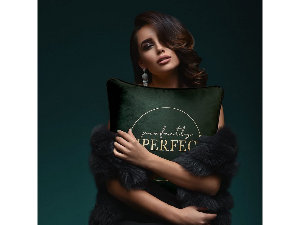 - Kolekcia obsahuje vankúše so zlatým lemom a dizajnovým nápisom.
