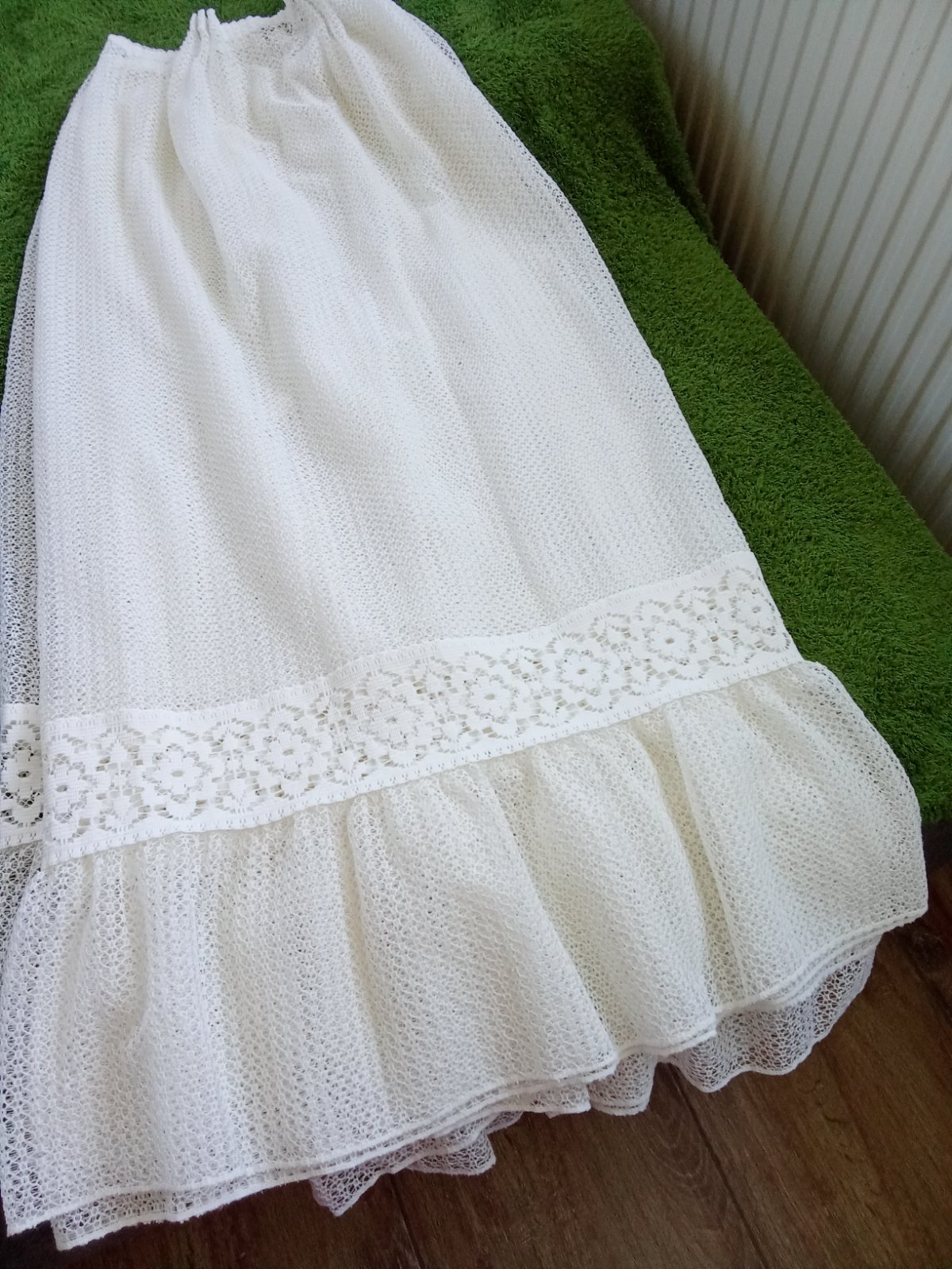 Nariasená 2,6 m, výška 115, farba je bleducka žltá, cena za celú záclony.parkrat potiahnutá nitka.