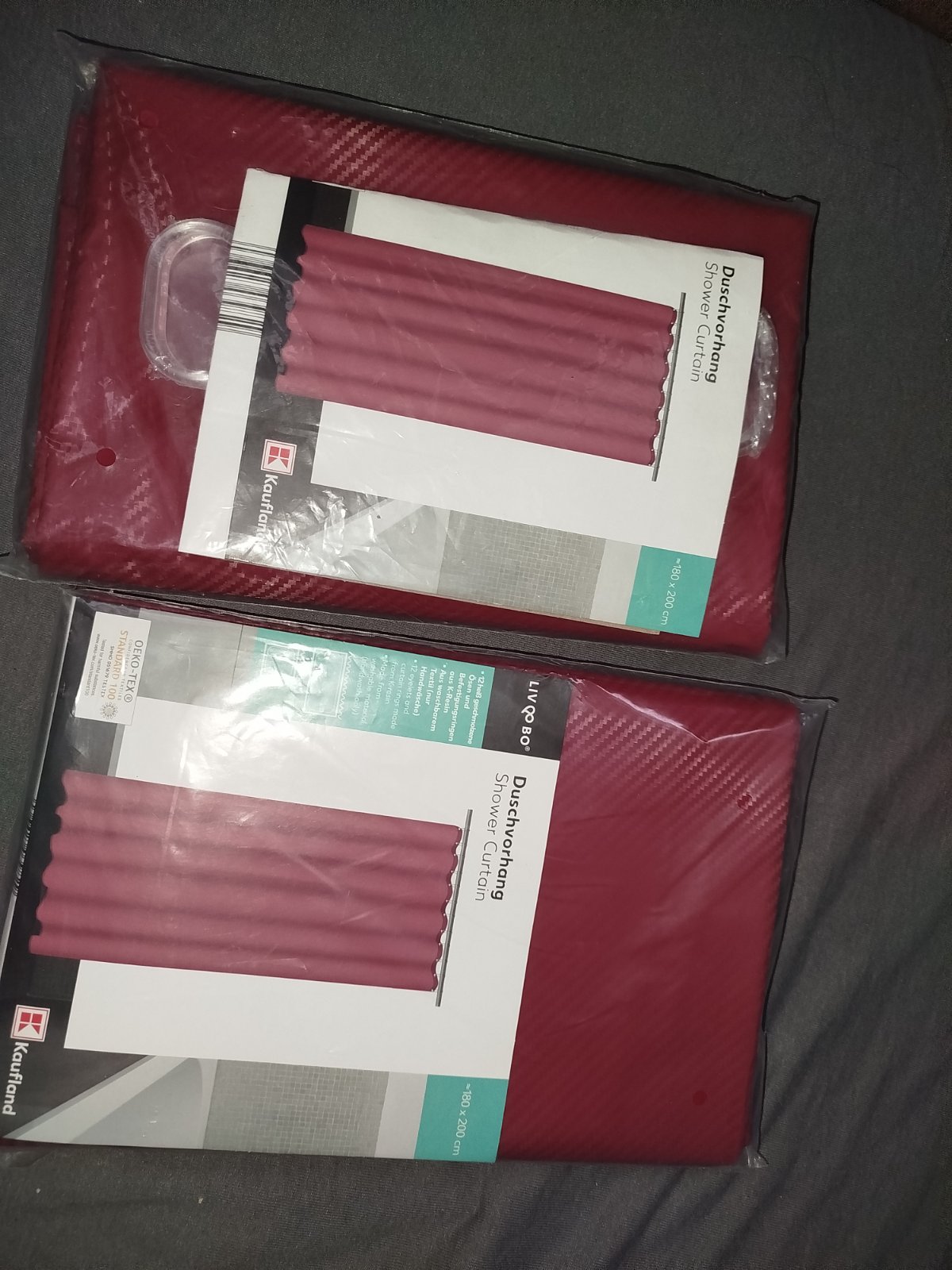 Predám 2 nové závesy do kúpeľne. Materiál guma, bordovej farby. Popis je na obale.