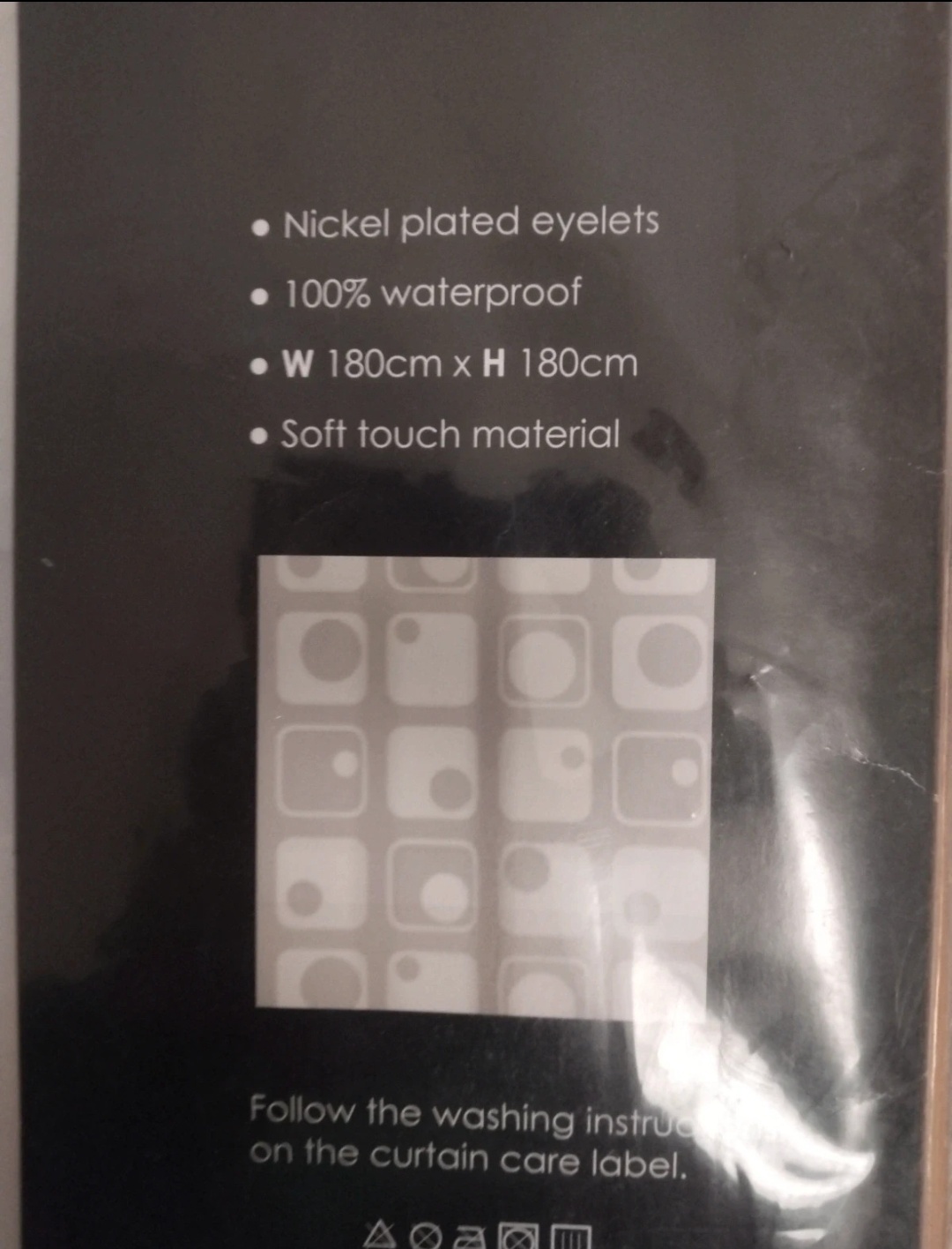Sprchový záves, 180 x 180 CM, len zavesený na skúšku a zvesený, rozmery a materiál na fotografiách.Nehodi sa ku kachličkám.
