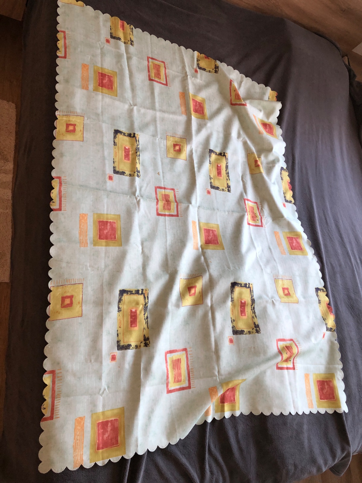 Darujem pouzivany obrus 110x160, dá sa prať na 40. Žiaľ ma pár flakov vid foto.