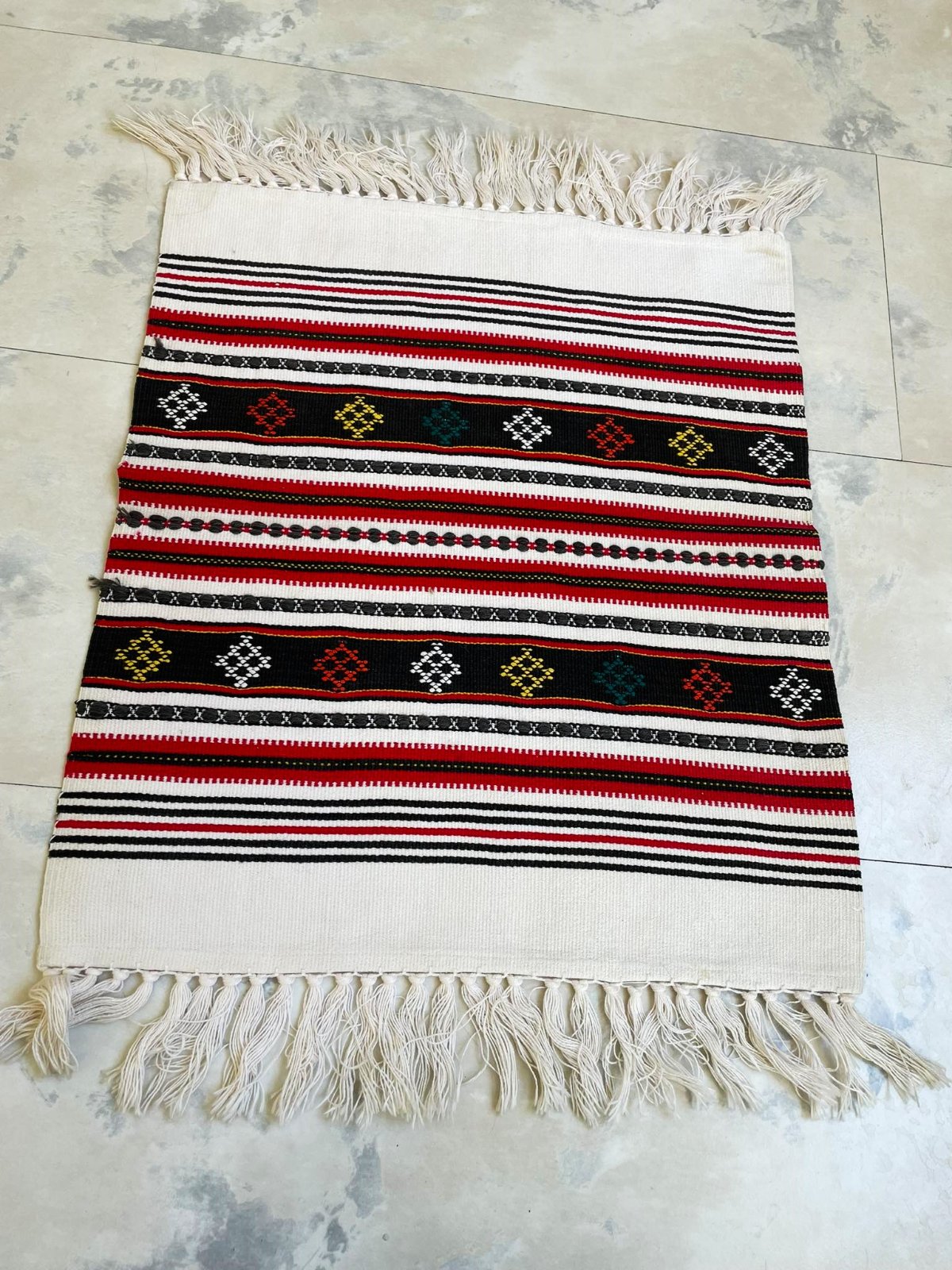 Tkany používaný obrus,37 x 32 cm,strapce 5 cm