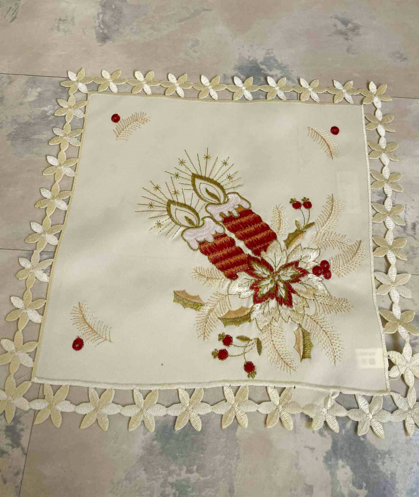 kvalitné jemné obrúsky,v top stave - ako nové,možno zakúpiť aj jednotlivo, 34 x 34 cm,kus/15 eur,farba smotanovo - biela, s jemnučkým nádychom do žltej,so saténovým lemovaním,cena je za celú sadu