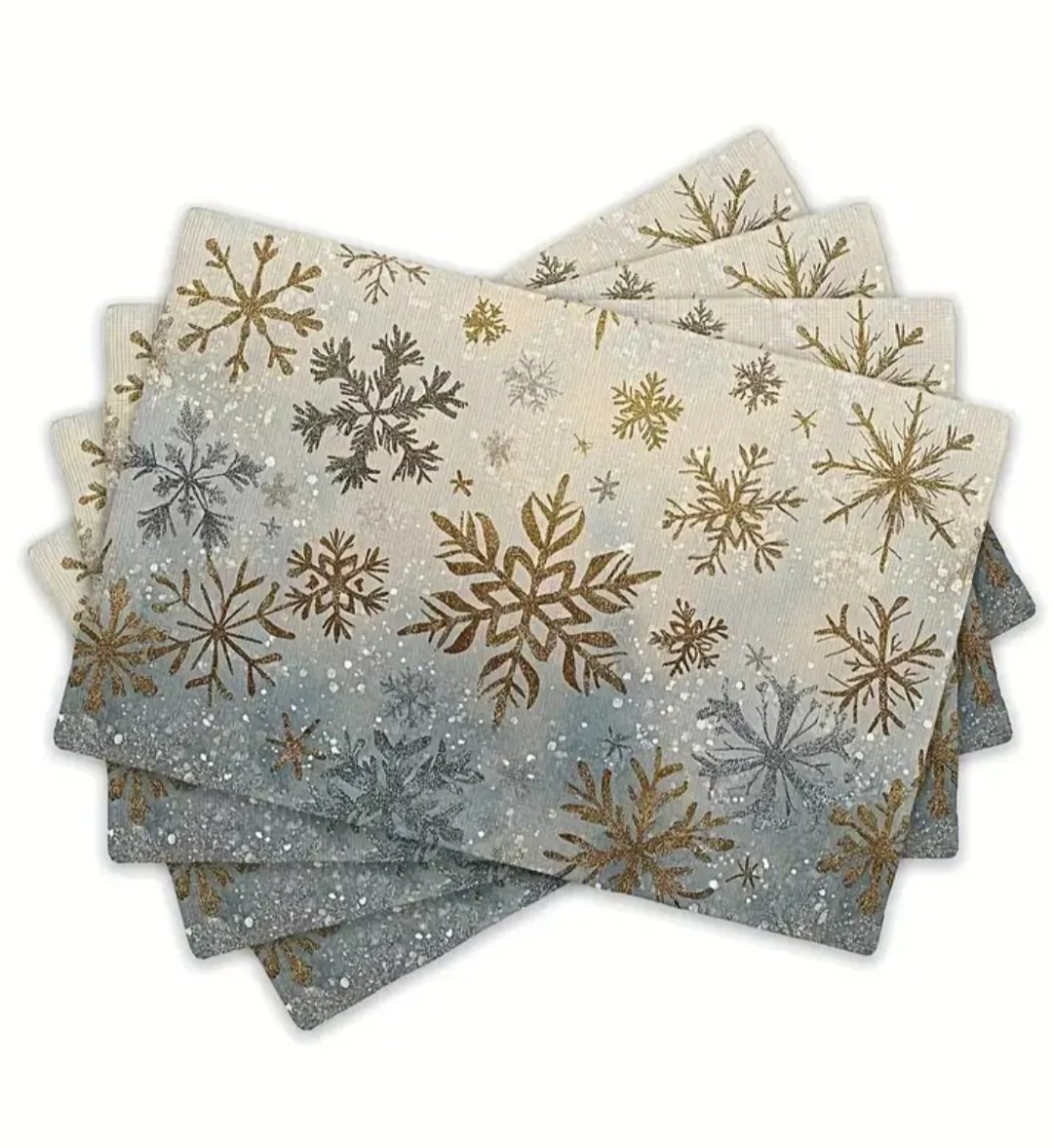 Vianočné zlaté prestieranie na stôl, 30×45 cm, 100% polyester, balenie 8 ks - 13 €.