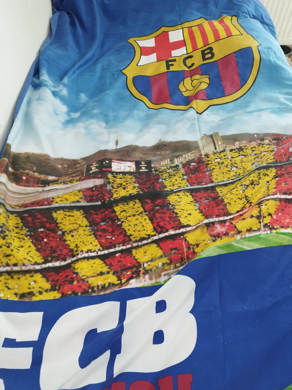 Obliečky sú používané,z jednej strany obrázok štadióna Ňou Camp,z druhej strany logo Fc Barcelona