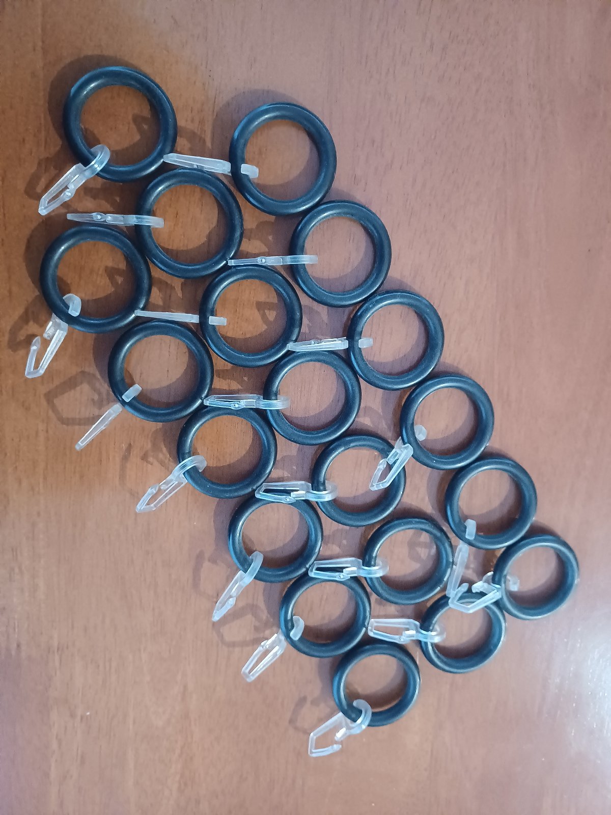 Predám tyče na záclony. Dĺžka 197 cm, koncovky sú v ponuke podľa foto, ku každej tyči je 19 krúžkov s háčikmi. Tyče boli kupované v IKEA. Cena za 1 kus je 13 eur, pri odbere všetkých naraz je cena spolu 35 eur. Osobný odber Banská Bystrica.