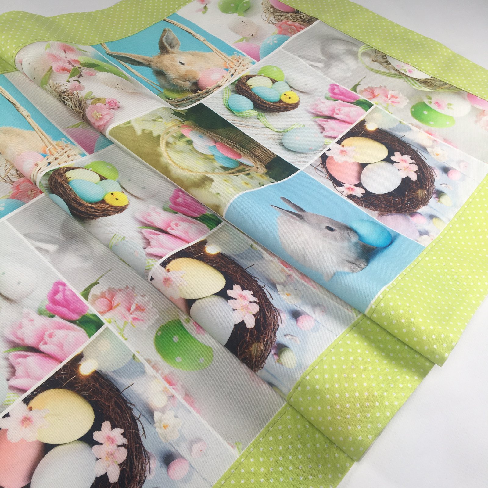 Dodajte svojmu domovu jarnú atmosféru s týmto nádherným veľkonočným obrusom! Obrus je zdobený veselými veľkonočnými motívmi, ako sú farebné kraslice, roztomilé zajace a jarné kvety, ktoré rozžiaria každý stôl.
