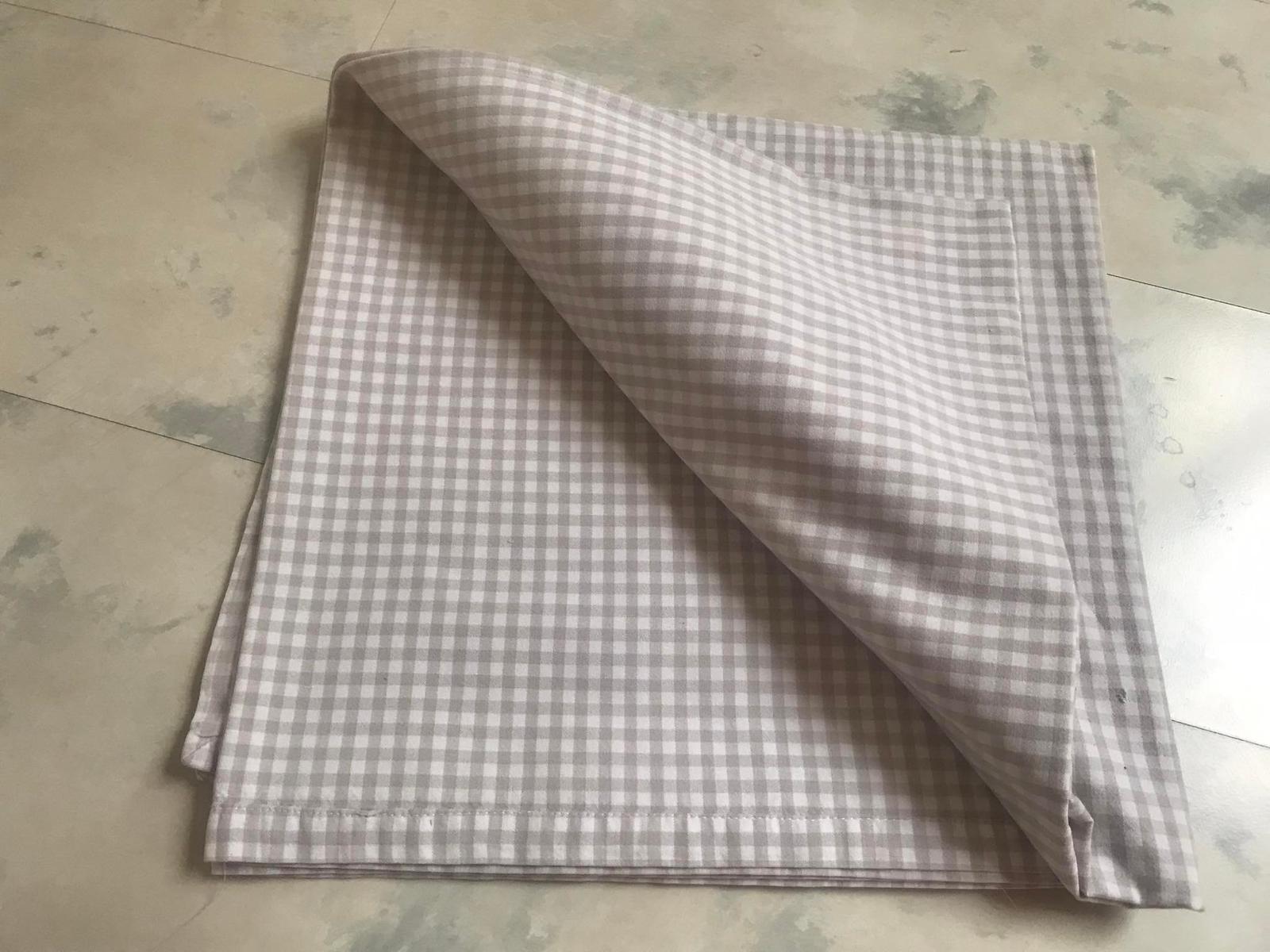 bavlna,jemná kocka,krásne obšitý,jemná vada - viď foto,ale pri prestretí to vôbec nie je vidno,ale upozorňujem na to, 135 x 135 cm